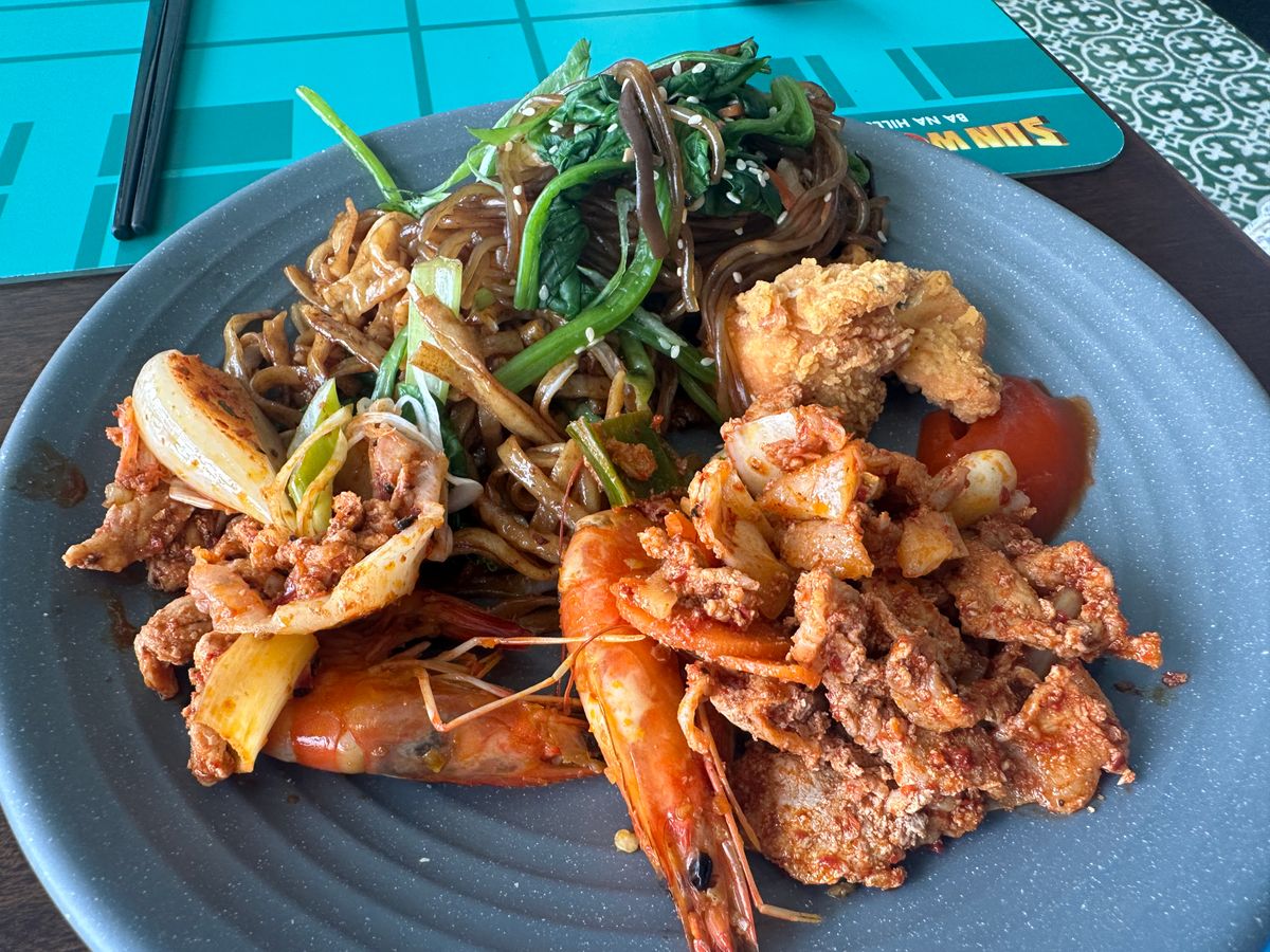 ランチはビュッフェでしたが、人が多く混雑しており、席を探して少しウロウロしました。フードコートみたいな雰囲気でガヤガヤしていました。食事内容は、種類は充実していましたが、味は普通でした。
