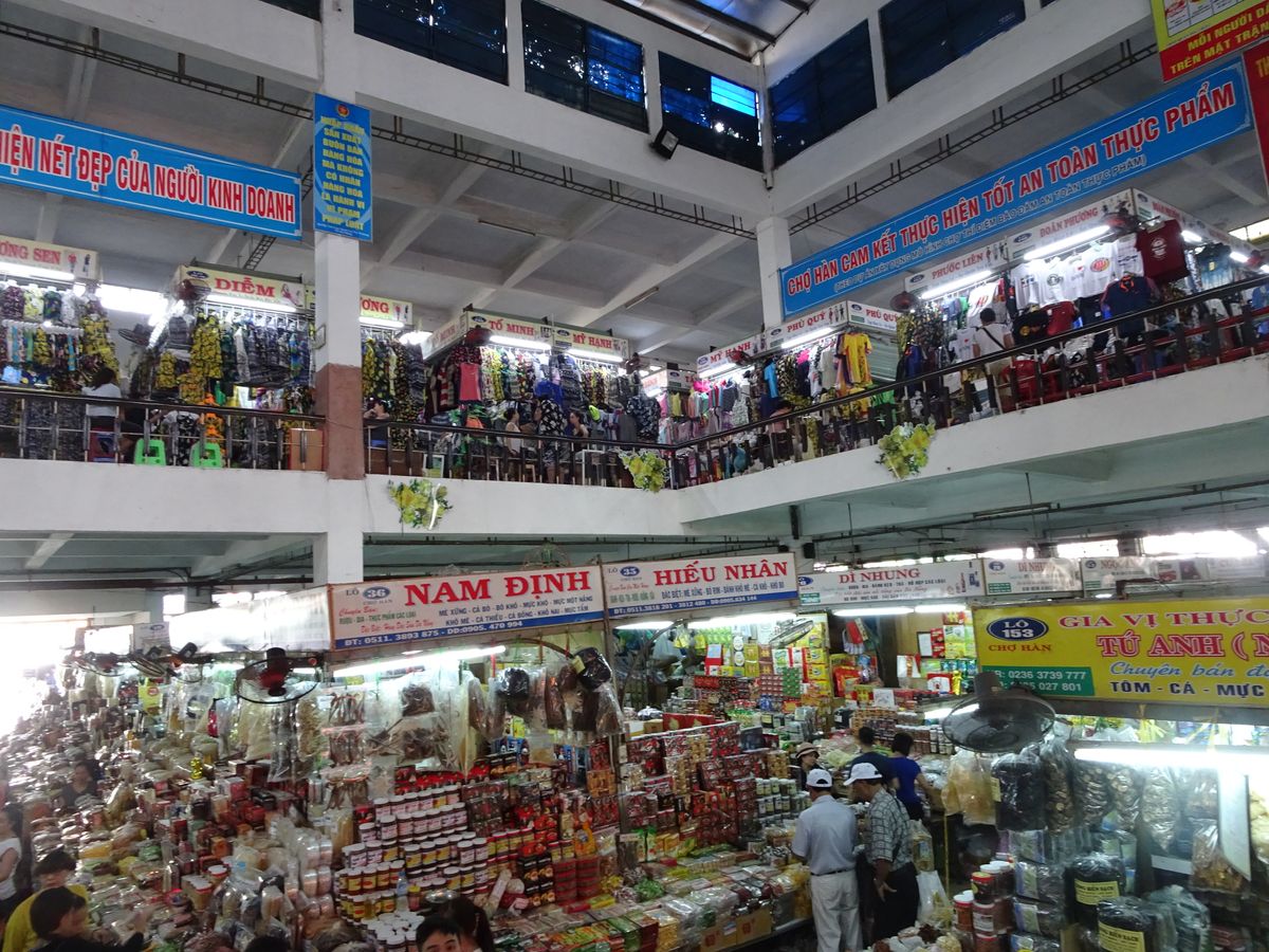 ヌックマムのにおいの漂うハン市場ではアオザイを購入。ここでオーダーしたら30分くらいで仕上げてくれます。できあがりで気に入ったものがあれば即購入もできます。