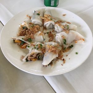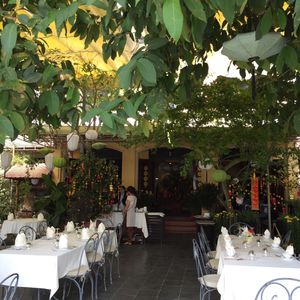 ホイアンでは川沿いのとても雰囲気のいいレストランのオープンテラスでした。お昼ちょっと前でまだ空いていて一番見晴らしの良い席でした。後で満席になっていたので、やはり個人で行くよりツアーだとそのあたりの時間配分が良いと思いました。メニューもホイアンの名物が出て もう一組の方とお話ししながら楽しくおいしく頂きました。