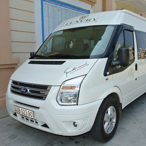ツアー当日ですが、時間厳守でピックアップ!車両は綺麗で新しいフォードのトランジット!