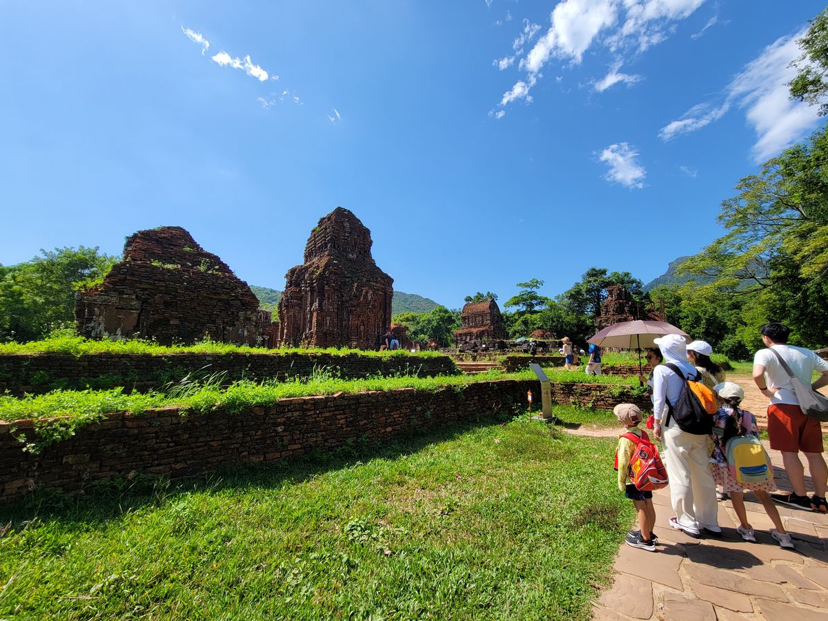 ミーソン遺跡は8月で晴天ということもあり、日差しが強くてとても暑かったです。8歳・5歳の子供連れだったので心配していましたが、遺跡歩きは必要最低限のコンパクトな内容で、子連れとしては逆にありがたかったです。帽子・日傘・ラッシュガードなど、暑さ対策は必須でした。