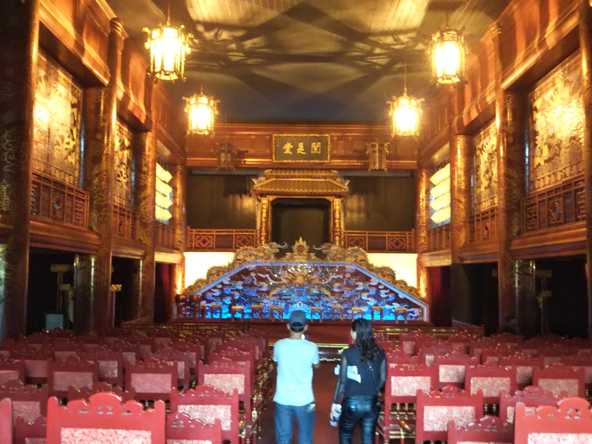 朝7時半にホテルを出発し2時間半でフエに到着。ガイドのチャンさんとまずカイディン帝陵へ。次にトゥドゥック帝陵お昼の後は王宮、ティエンム寺とあっという間の1日でした。当日はたまたま我々夫婦だけでしたが、その分チャンさんに丁寧にガイドしていただき充実した1日でした。でもやフエは一日では全く足りないので次回は是非2日くらいかけてじっくり観光したいと思いました。