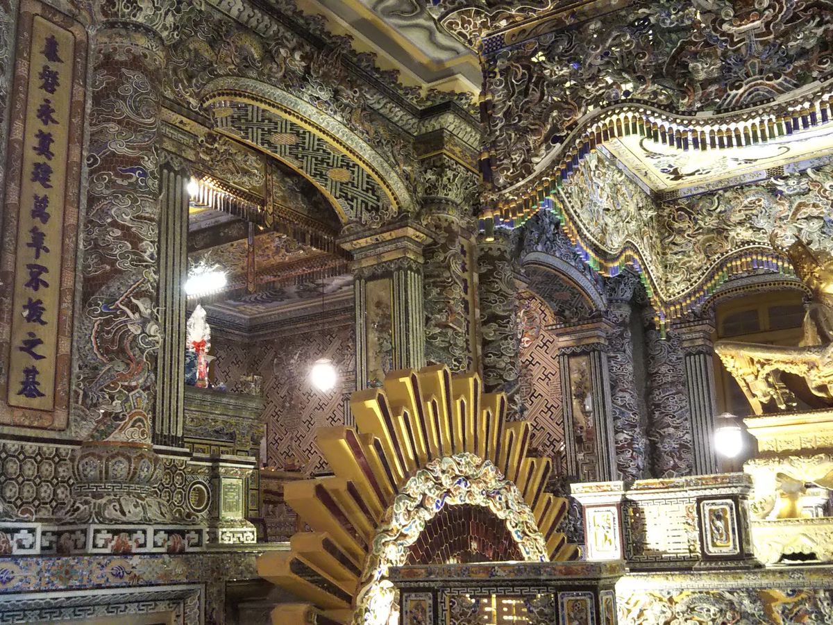 カイディン帝廟、トゥドゥック帝廟、王宮、ティエンムー寺、線香作りを見学できるお土産屋さんと行きましたが、個人的には絢爛豪華なカイディン帝廟が気に入りました。