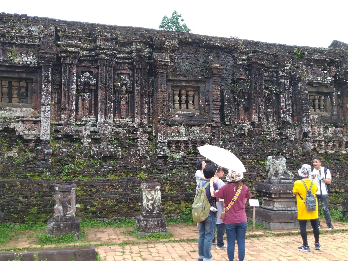 ガイドのお姉さんは、ツアーバスの移動中からベトナムについて等の説明を沢山してくれました。アットホームで親切な分かりやすいツアーかと思います。また、20分程度は歩いたと思うのですが、当日は小雨が降るような天気だったので、ミーソン遺跡がジャングルのような森林に囲まれていることもあり、森林浴をしているような清々しい気分で歩くことができました。ただ、現地での自由散策時間が15分程度と少なく、30分程度はほしかったです。ランチのお店は、川沿いの風が通る素敵なお店で、料理もおいしかったし、ベトナム伝統料理が食べられました。ミーソン遺跡に興味ある方にはおすすめのツアーです。