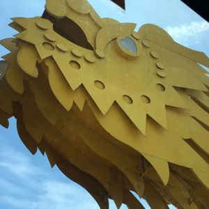 カイディン帝廟のモザイクアートに日本のビール瓶が使われてるよ!と文字の確認できる部分を教えていただきました。
