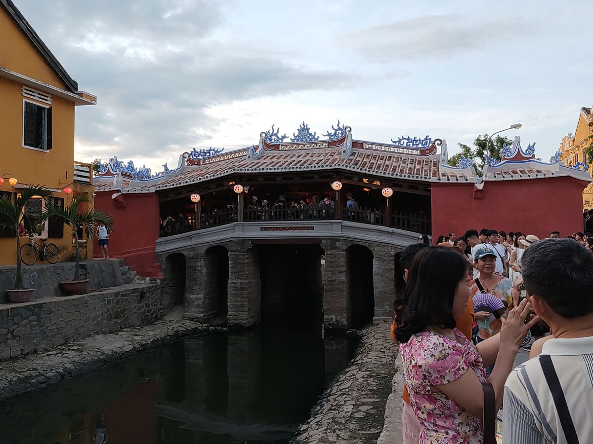 ホイアンでは、まずは織物工場見学からです。最後に購入を促されますので、しっかりいらないと言いましょう。そこから少し街歩きをしながら、夕食会場へ到着。食事までは少し時間があるので、1時間くらい自由時間をもらえました。日本橋を見たり、気になるお店などを回ったらいいでしょう。