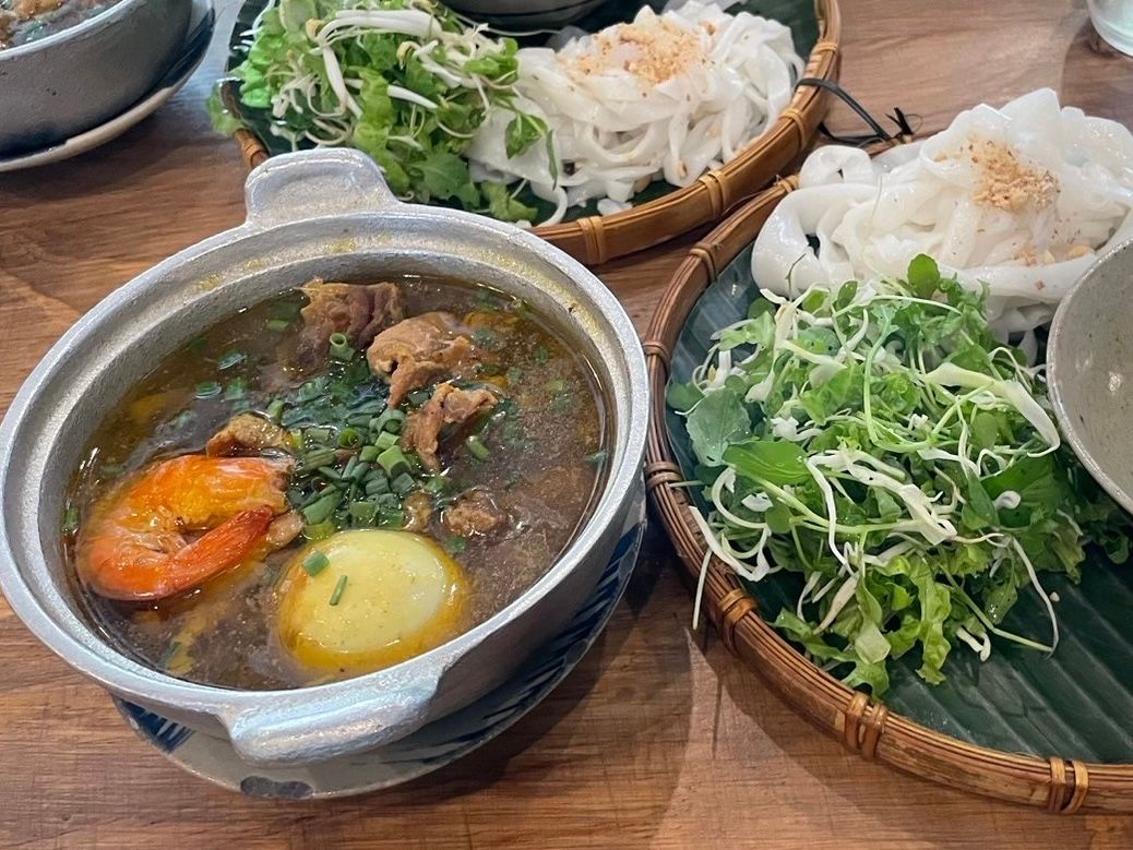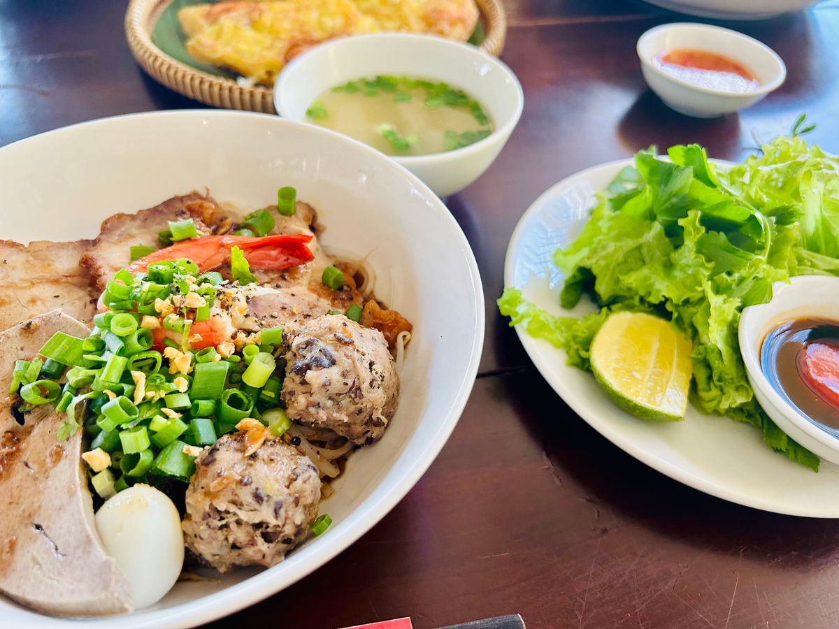 ランチはミークアンだけだと思いきや、バインセオと生春巻きまでセットですごいボリュームでしたがどれも美味しかったです。
