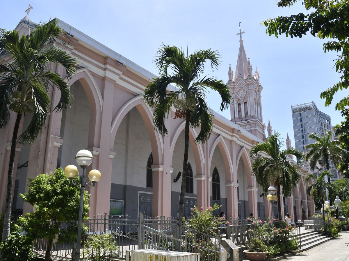 そして、ダナン大聖堂はミサが行われていたため敷地内には入れず。近くのマルゥで試食チョコは、どれも美味しかったです。
