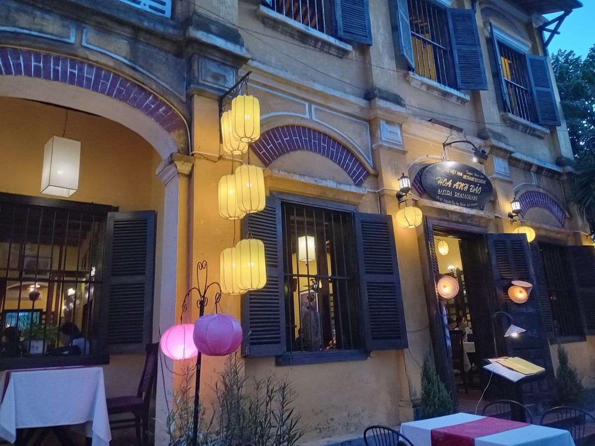 日中の街並みも黄色の建物にピンクのお花が映えてとても可愛く素敵でした。夕飯も美味しく外の景色も暗くなるにつれランタンに明かりが灯り日中とはガラリと雰囲気がかわります。夜になるとボートもたくさん出てランタンの明かりが水面にうつりとてもきれいでした。食事の途中激しい雷雨で灯籠流し出来るか心配しましたが食事が終わる頃には雨もやみ灯籠流しも体験出来て良かったです。絶対におすすめです!