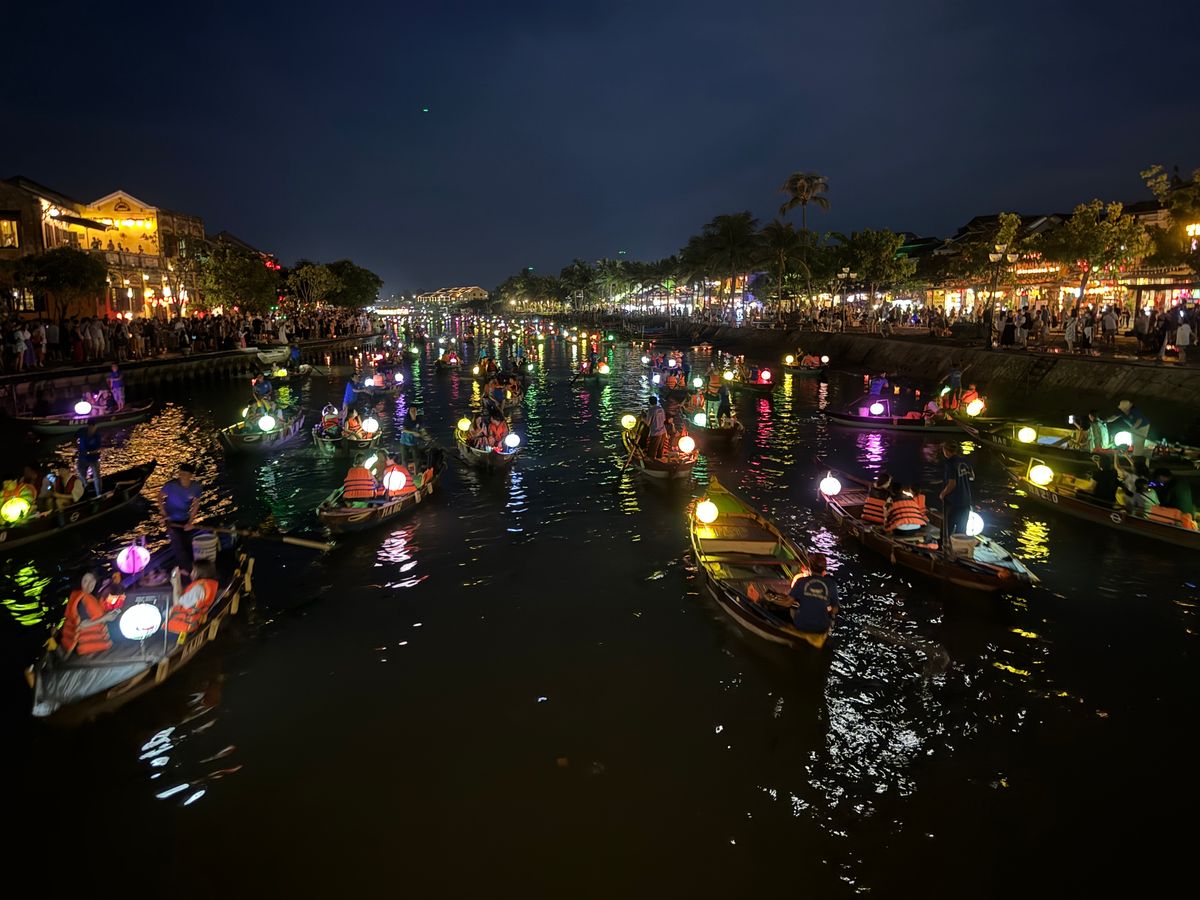 ホイアンは町並みとランタンの灯りが幻想的で、燈籠流しはボートには乗らずとも楽しかったです。
