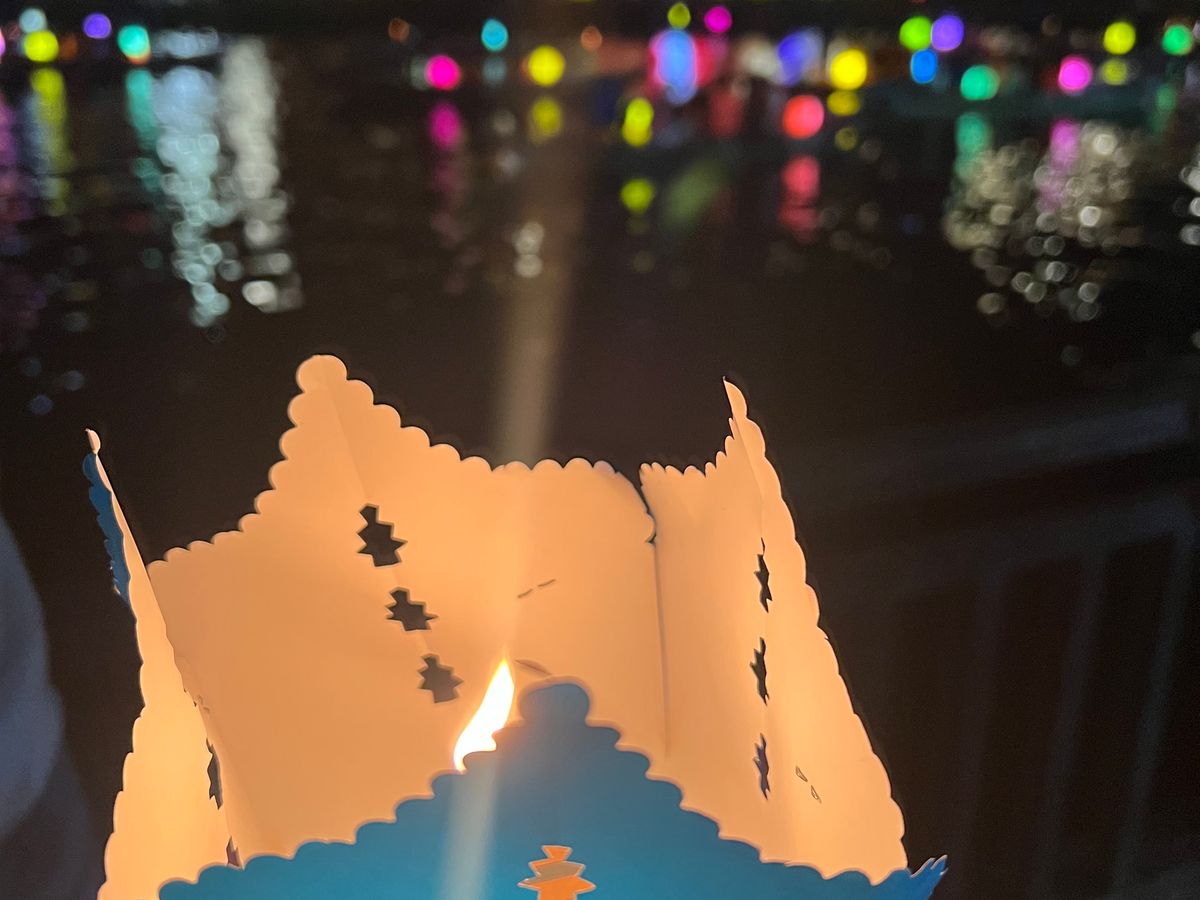 食後に灯籠流しをして、暗くなった後のナイトマーケットを散策。思っていたより賑やかで、人もかなりいましたね。