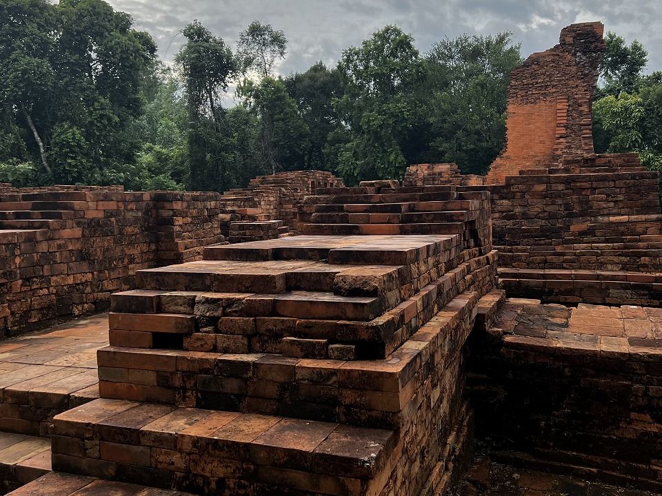 二つ目のミーソン遺跡では、駐車場に着いた途端にものすごいスコールに見舞われて、30分近く動けない状況でしたが、スコールが止んだ後は気温も下がって涼しくなり、快適に見学が出来ました。