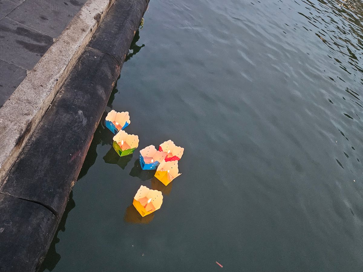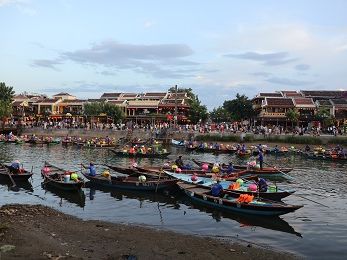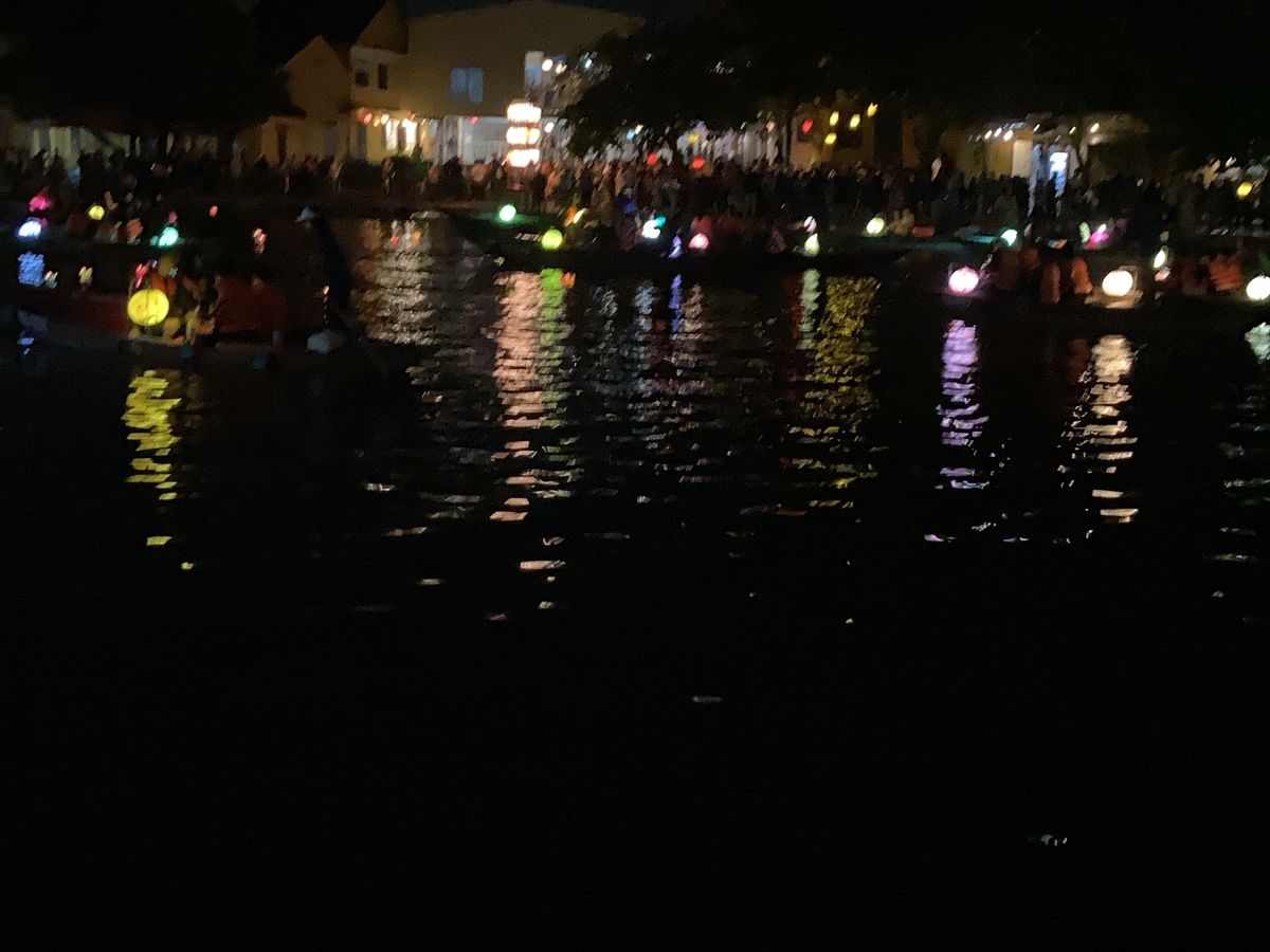 ホイアンでは日本橋が改装中で残念でしたが、ランタン流しを体験できました。