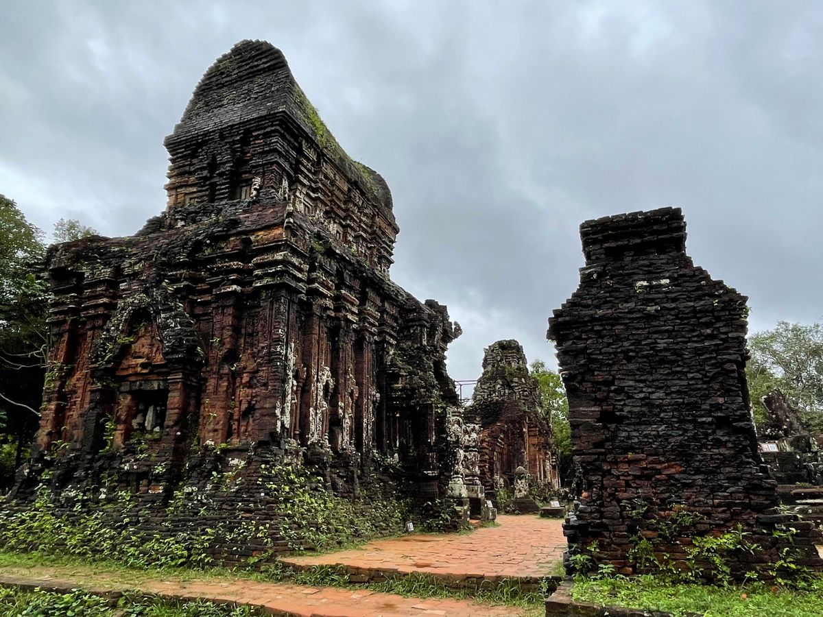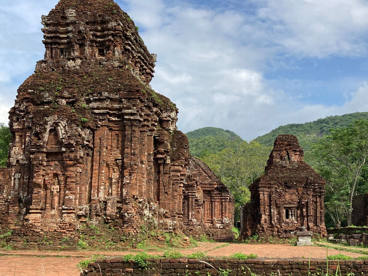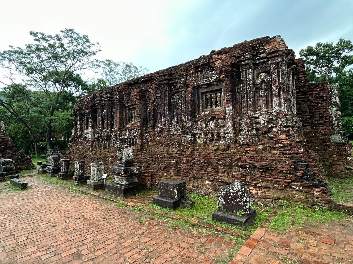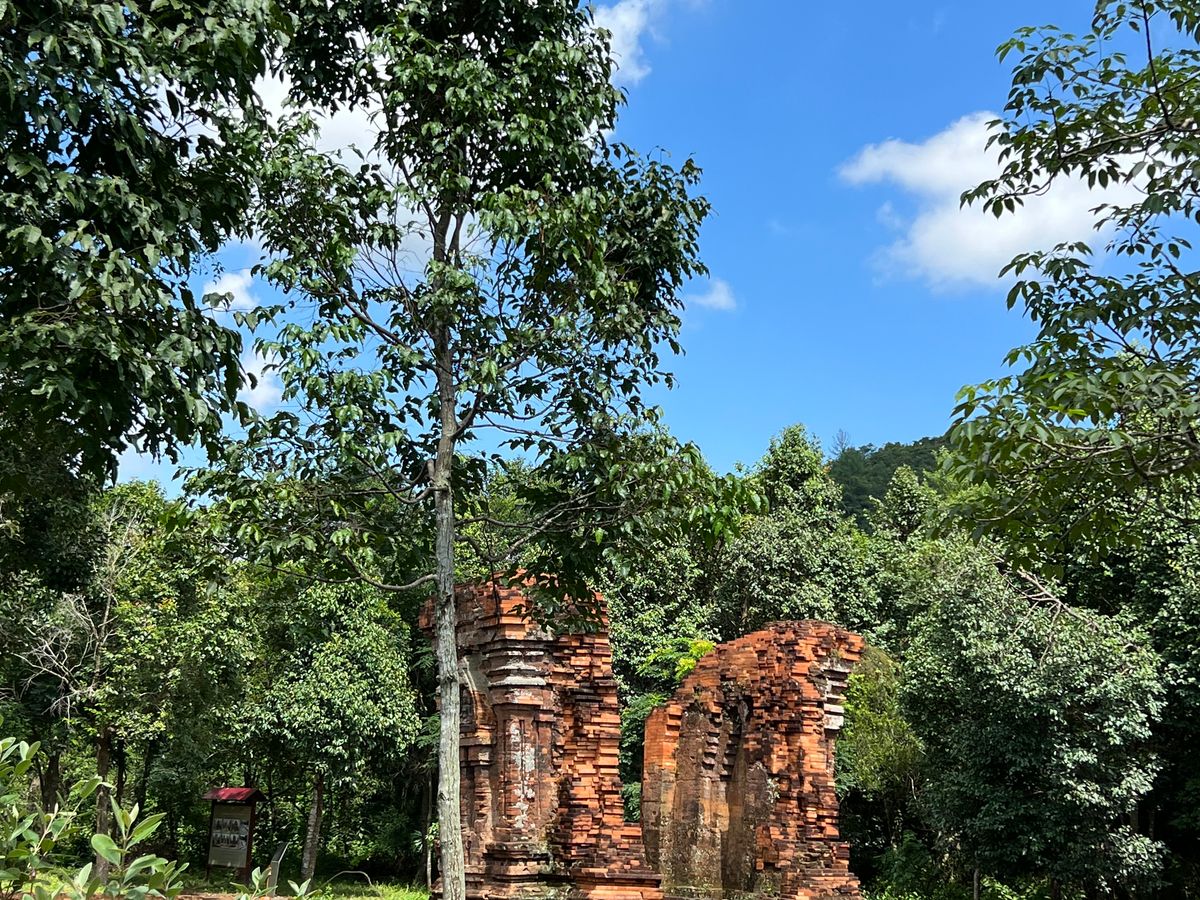 ガイドさんの説明がとてもわかりやすかったです。ミーソン遺跡で素晴らしいのは焼成レンガで造られた建造物であまりに精密に組んであるので苔が生えないそうです。修復したレンガの壁には生える。隙間があるからで現代の技術でも苔が生えないほどの精密さでレンガが組めず修復の壁は雨季になると苔だらけになるそうです。