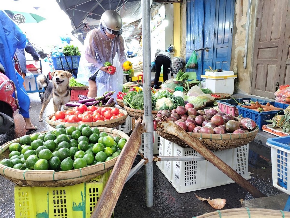 ダナンのホテルまで迎えに来ていただきまずはホイアンの市場で食材やおすすめの動画などを気さくなガイドの方(料理教室の先生)から紹介していただきました。