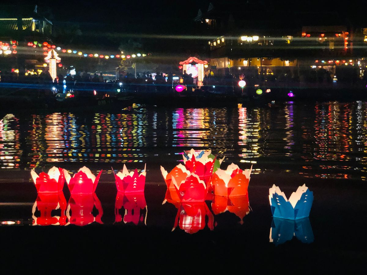 色とりどりのランタンが水面に映える幻想的な景色が待っていました。
