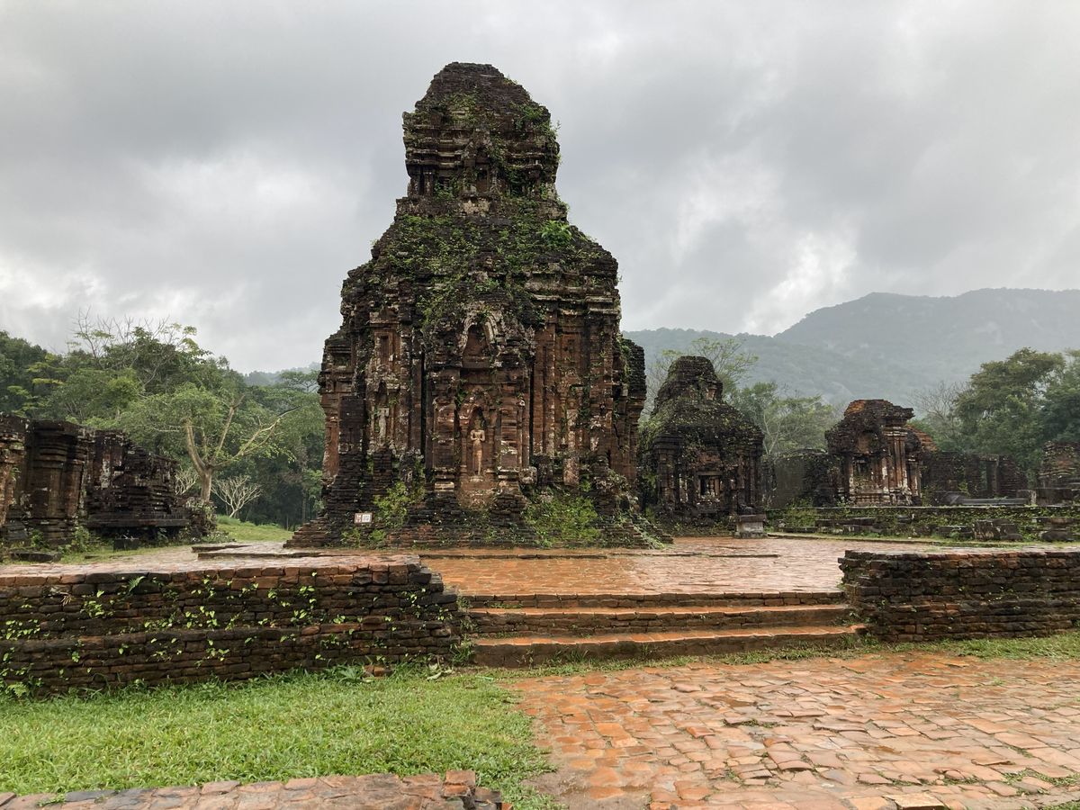 ・ミソーン遺跡 あいにく雨の中の観光、足元滑りやすく、歩くのが大変でした。同じヒンズー遺跡であるアンコールワットと比較して、見どころは乏しかった。