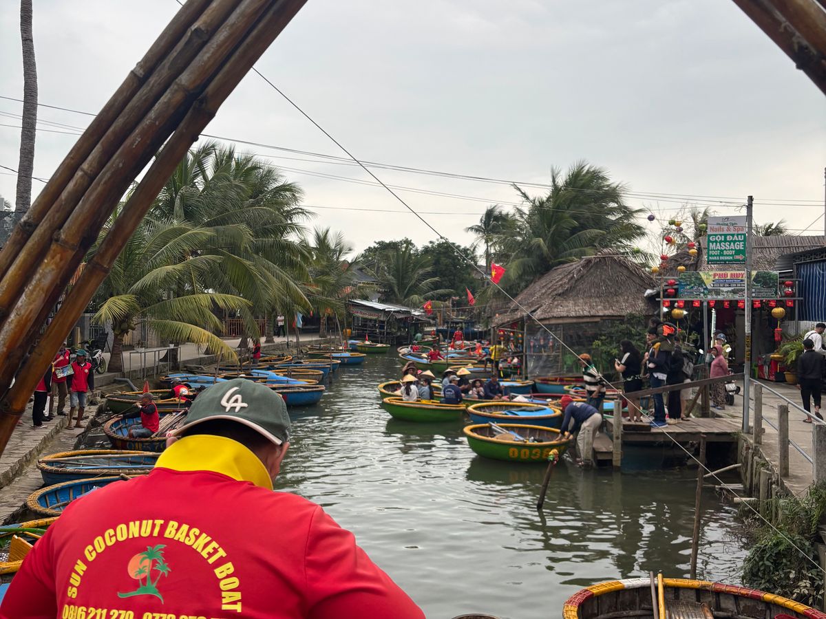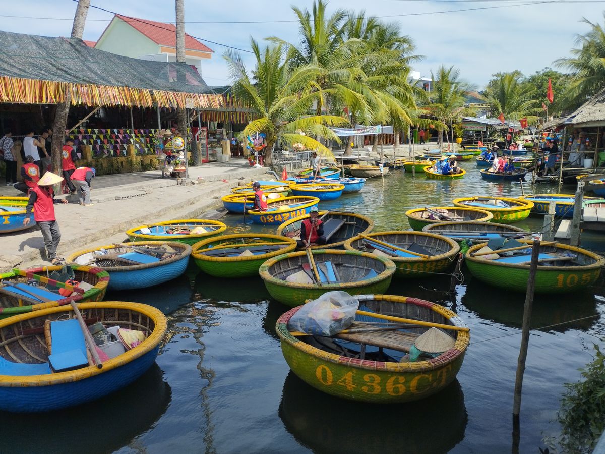 ボートは、まずエンジンで動く10人乗りくらいのものに30分乗った後ホイアン名物のバスケットボートに乗ります。とても風情があって、ここでしかできない体験です。