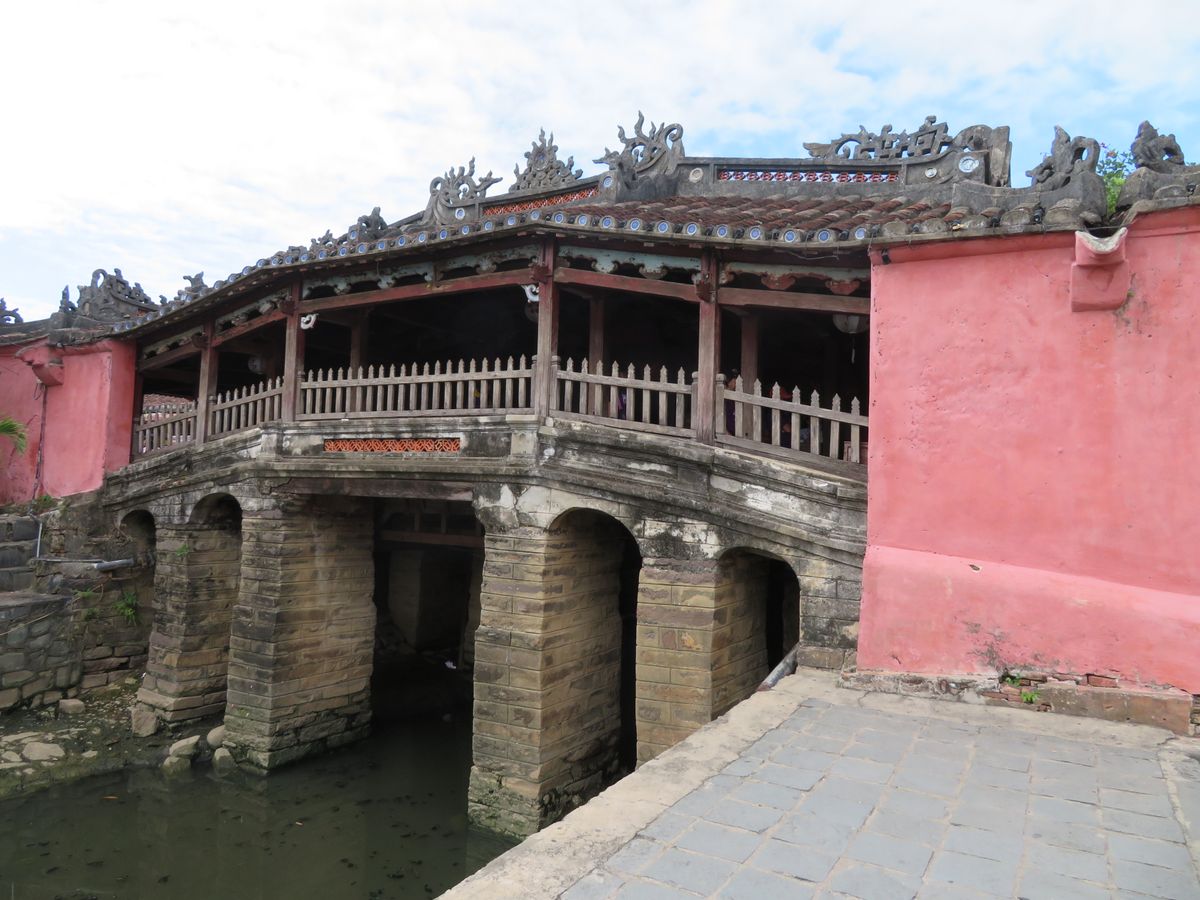 まずは、ホイアン旧市街をガイドさんの説明付きで散策。有名な日本橋やトゥボン川に架かるアンホイ橋がライトアップされた姿が印象的でした。