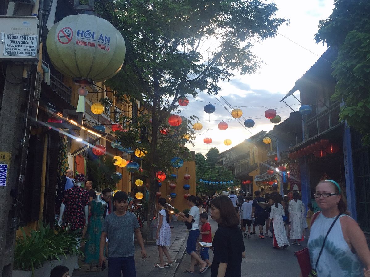 夕暮れのランタンはとって幻想的でした。夜のホイアンは薄暗く人も多いのでツアーの参加をおすすめします。ライトアップされた日本橋は素敵でした。夕飯もとっても美味しかったです。おススメのツアーです。