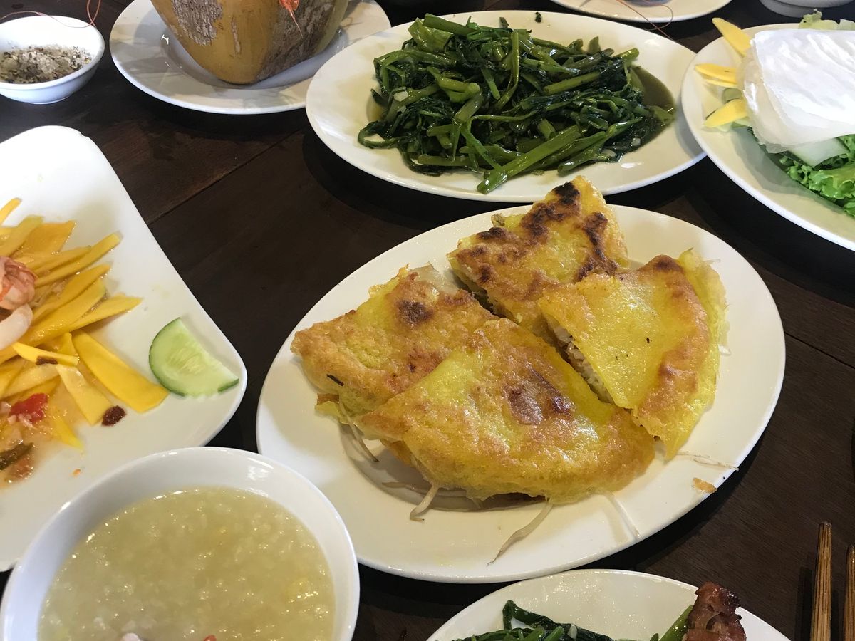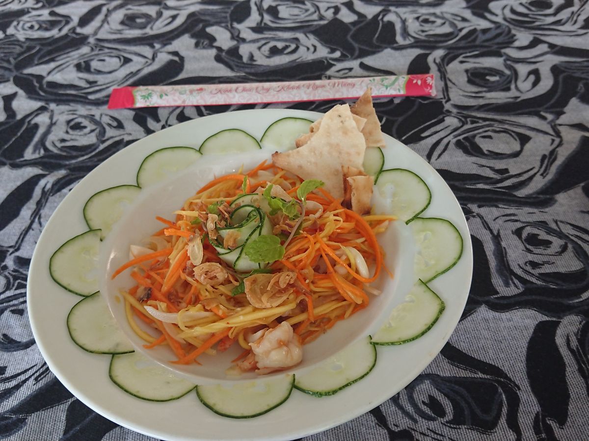 食事は昼、夜ともに名物料理がたくさん出されました。昼食の「マダムヤン」はホテルの人も推薦するレストランだけあって、バインセオ(ベトナム風お好み焼き)筆頭に どれも美味しかったです。ただ、ボリューミーなので完食はできず…。