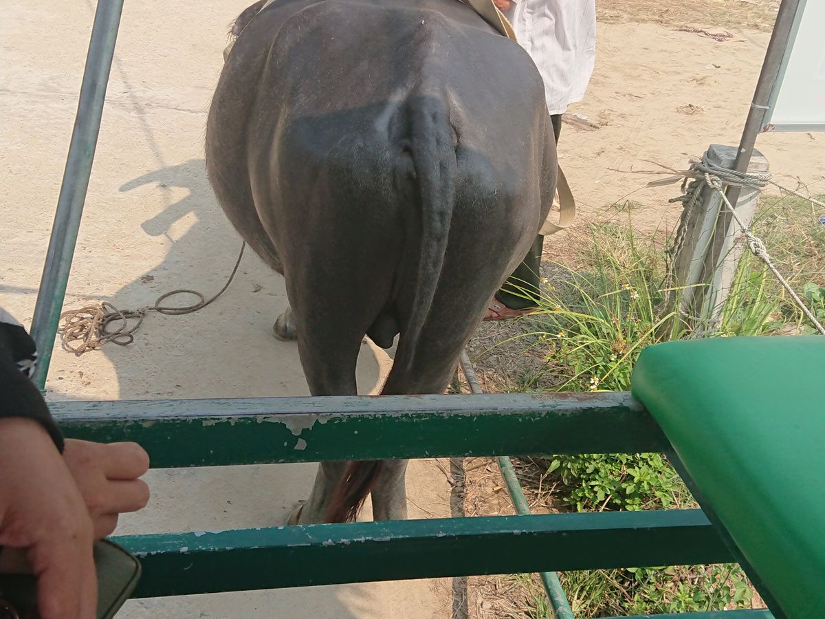 牛の背中に乗せて貰えました おとなしい牛くんでした