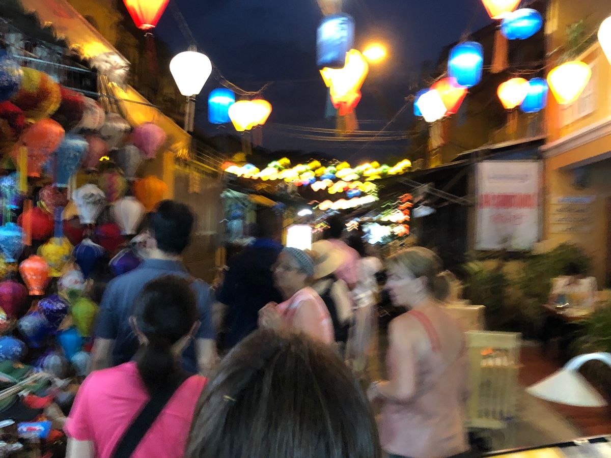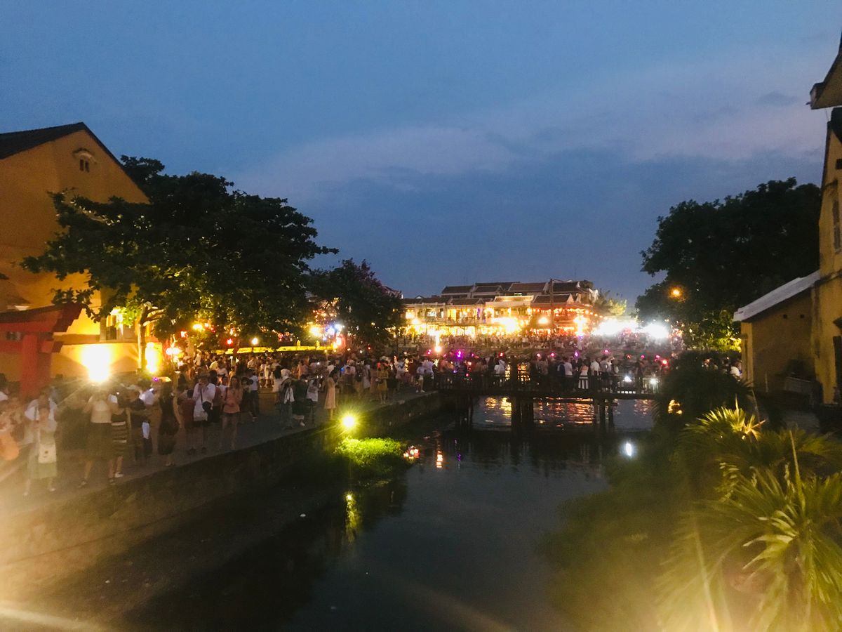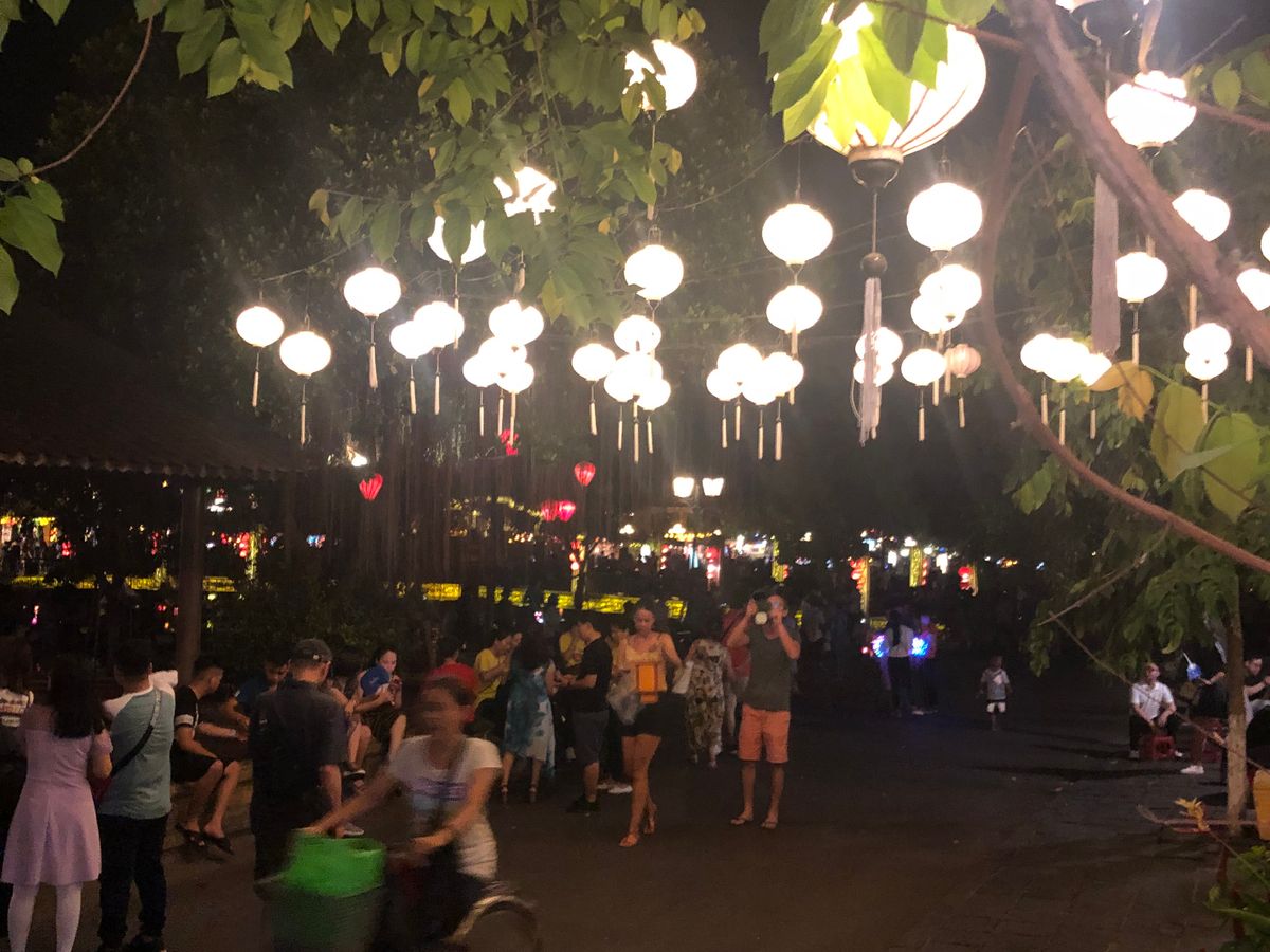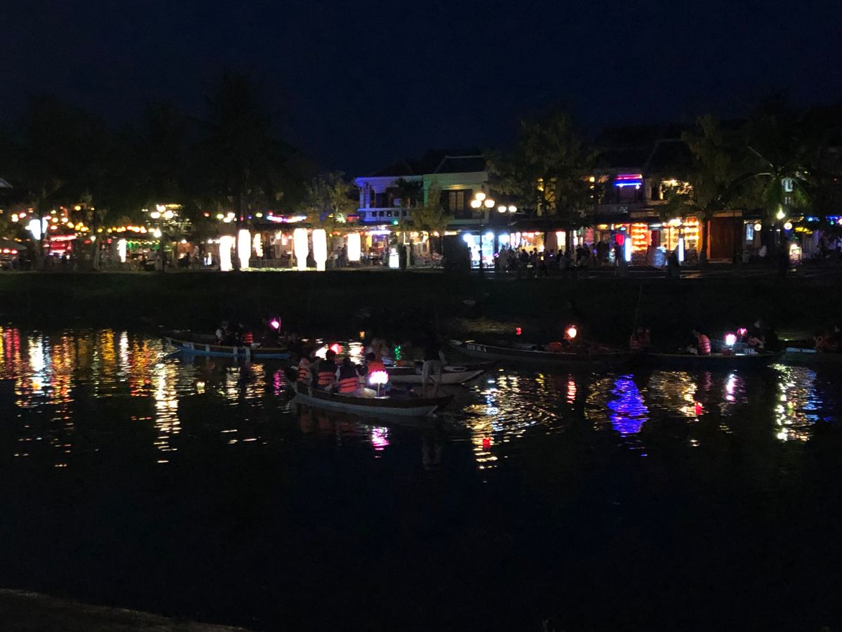 ホーチミンから朝の飛行機でダナンへ移動してこのホイアンの灯篭流しのツアーを楽しみにしてました!夕方バスのお迎えがあり、何箇所かピックアップ、ところが20分以上出てこない方がいらっしゃいましてかなり時間が押してしまいました、やっと来ると家族4人組でベビーカーを押していてもう一人の男の子も小さい。ごめんなさいの一言もなしでなんだか車内は嫌な雰囲気になりました。大きな駐車場に着いたらゴルフのカードのようなやつに乗り換えてホイアンの中へ向かいます、シルクの工房へ着いて蚕や繭を見てシルクの洋服やスカーフオーダースーツなどの販売を見て、若干時間が長い、この先ホイアンではトイレを借りる際お金がかかるからと、シルクのところでトイレを済ませました。そこから灯篭流しのほうへ歩いていきます、ガイドさんの声も小さく全体をまとめようとしてないのを感じ、人混みの中はぐれないようみんな必死でした、旗でも持って頂きたい。家族組は速攻ではぐれてしまいまたまた私たちはその家族を道端で何分も待つことになりました。夜ですがかなり蒸し暑くてイライラも募ります…ようやく歩いてるのを発見し食事する場所へ。食事は揚げ物ばかりで暑い夜にはキツイ…相席なので食べづらいし取りづらいし気を使います。またレストランが冷房がなくかなり蒸し風呂状態、汗をだらだらかきながら早く終わらないかなー外へ早く出たい。ガイドさんも食事が終わる時まで見かけずかなり食事の時間は長く感じました、せめて涼しいところでゆっくりさせて欲しかったです。おいしさ半減してしまいます。出発しますーとなった時に家族組がまたトイレに行き始めて待たされる…団体行動が全く出来てなくベビーカーに乗せたりモタモタ、流石にベビーカーでのホイアンの灯篭流しの知らない人同士の団体行動は厳しいのでは?多くの人が迷惑でした。