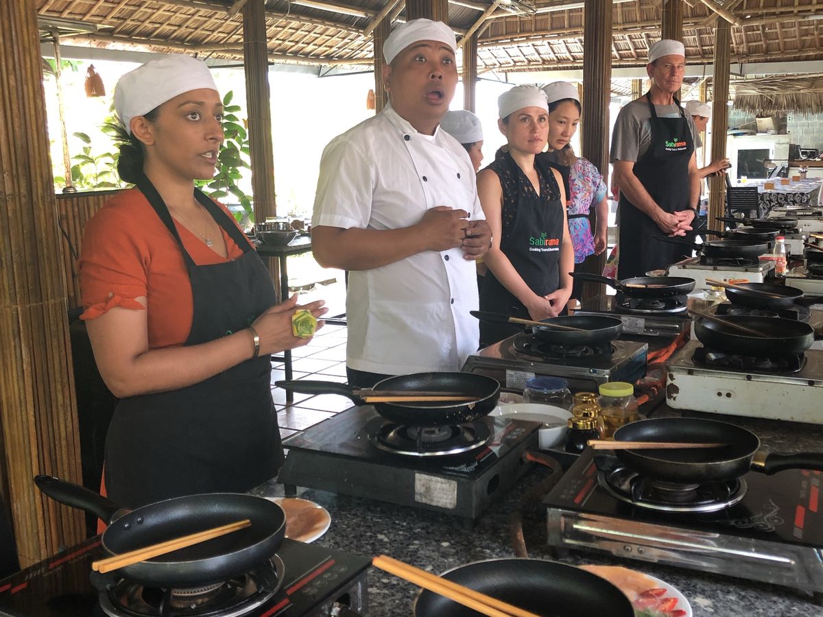 ボートで移動後、小さな舟に乗り換えましたが、船頭が若い方で、ぐるぐる舟を回したり、揺らしたりして、こちらが止めてくださいと言っても、おかまいなし。目は回るし、ひどい船酔いで料理教室での料理があまり食べられませんでした。