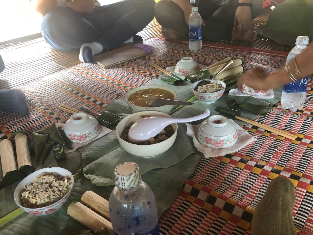 竹で炊いた餅米ご飯、とても貴重な体験ですね。旅先でのお食事は思い出深いと思います。