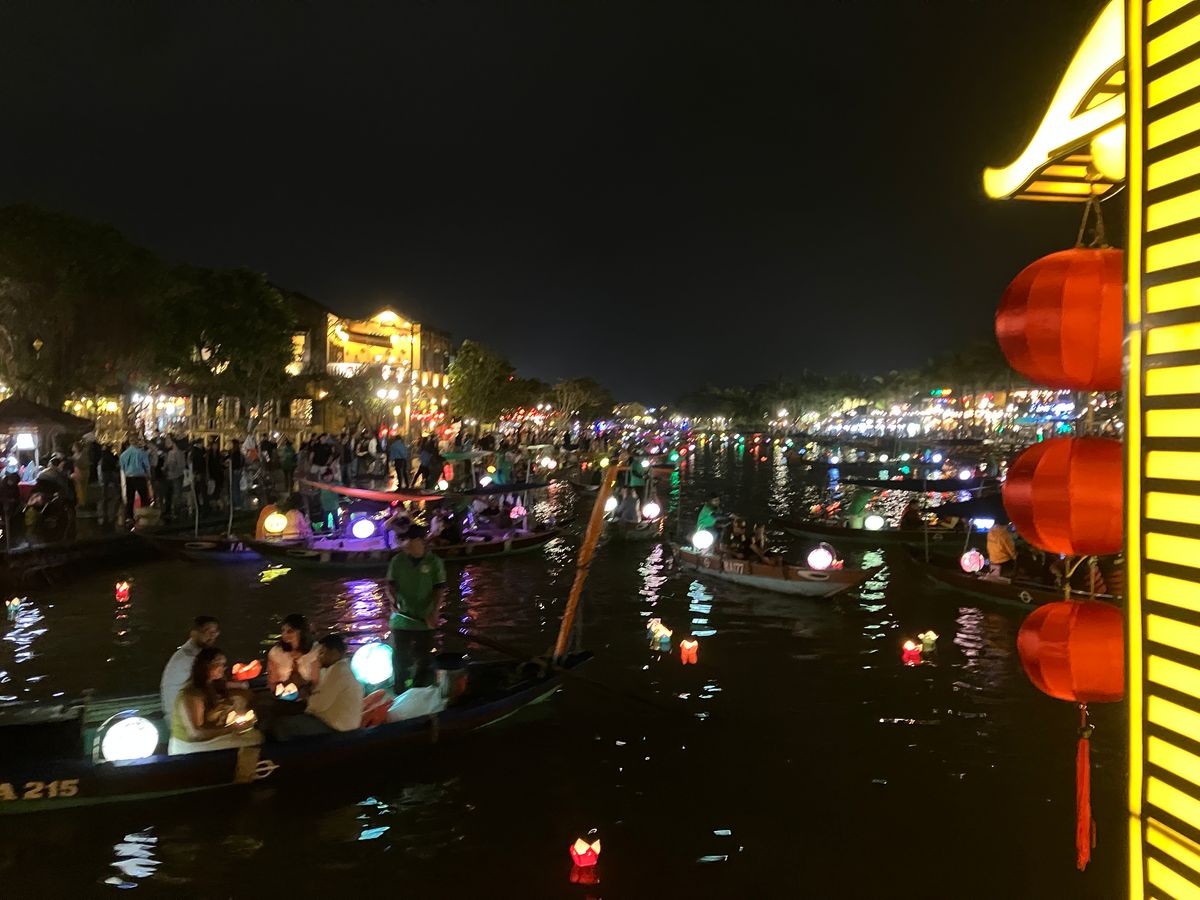 ナイトマーケットや有名バインミー店へ食事へ行ったり、再度ガイドさんと落ち合ってから、ガイドさん仲介で船へ乗りランタン流しを楽しみ、とても有意義なホイアン観光でした。