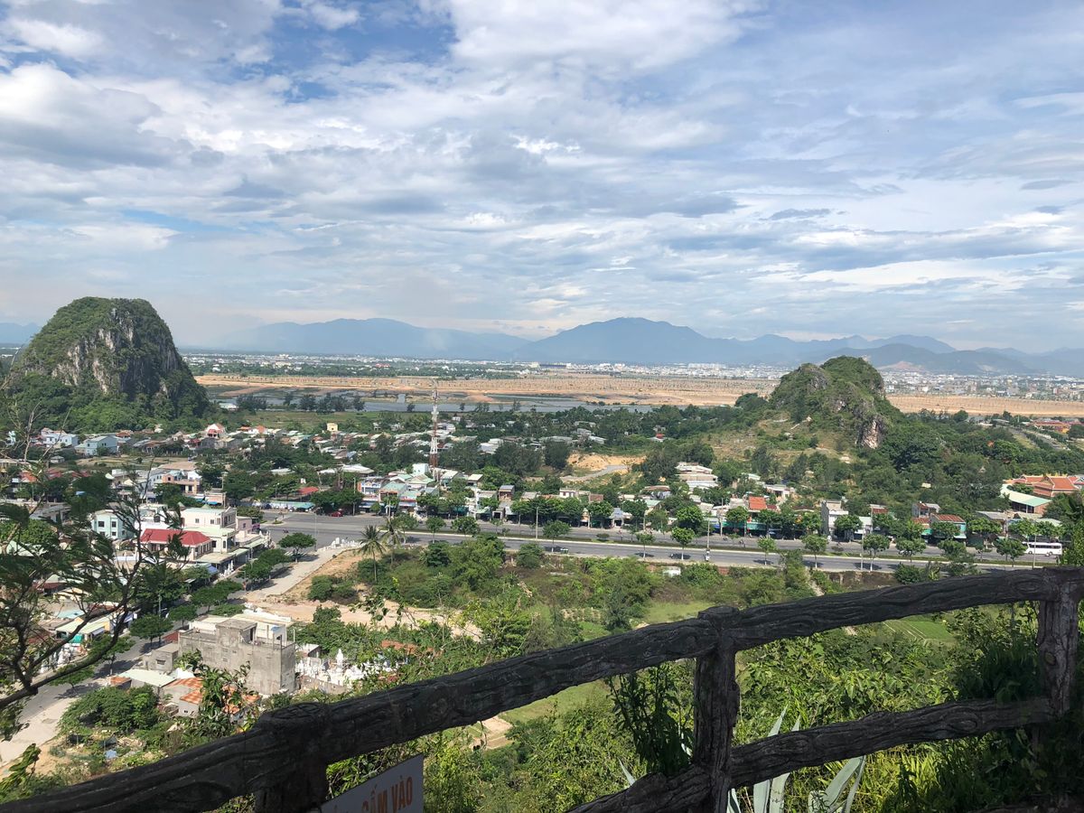 最初の観光地は、五行山で途中までエレベータで上がり、お寺や洞窟を巡りますが、エレベータを降りた所に五行山全体の地図が有り、このとても暑い中歩き通せるのかが不安になりました。所々、休憩を入れながら、洞窟の涼しい風や山頂の不幸明媚な景色とさわやかな風で癒され、バスを下車した反対側へ下山し、バスへ再度乗車しました。