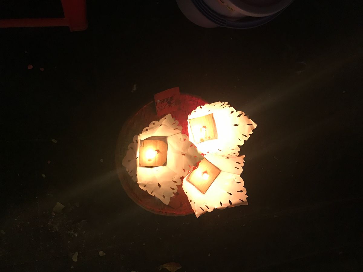 川沿いに行くと、灯籠を売っているおばあちゃんがたくさんいてそこから買い願いを込めて川に流しました。とても幻想的でよかったです。