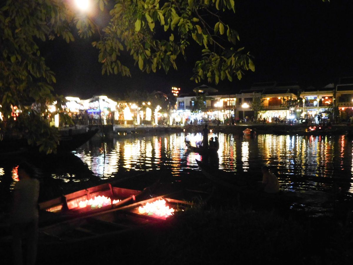 満月とランタンの灯りに光り輝くホイアンの夜を満喫しました。灯籠流しにも挑戦をして、古の