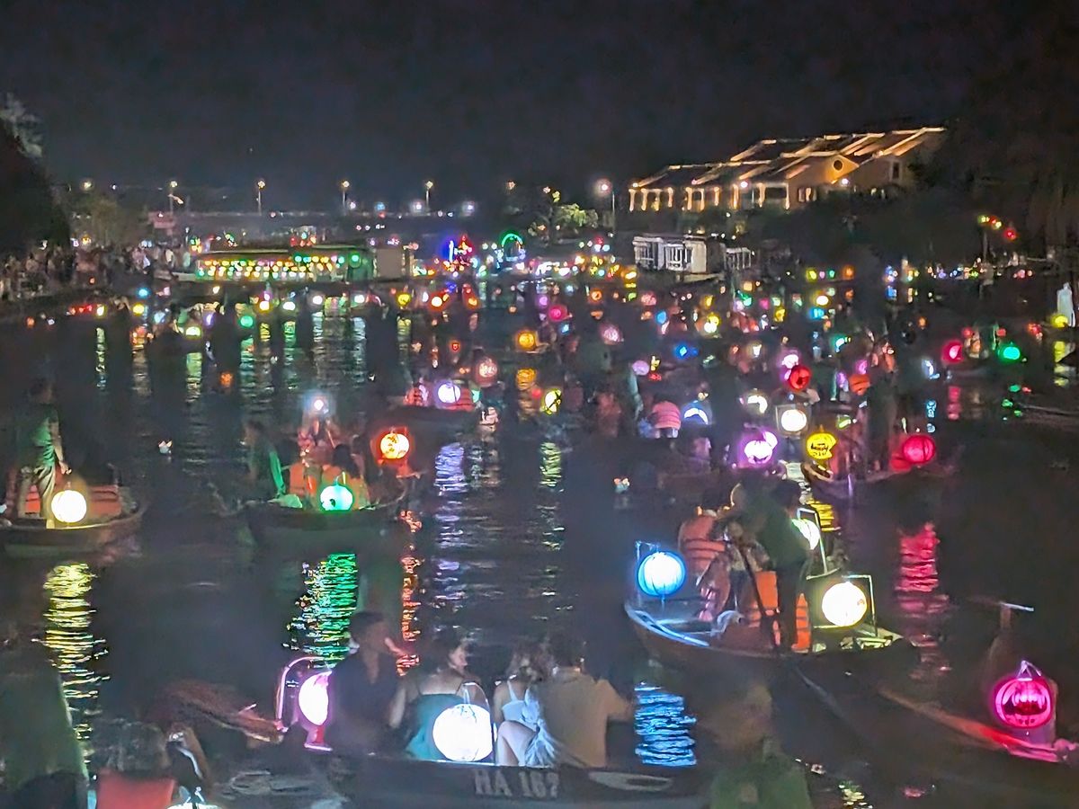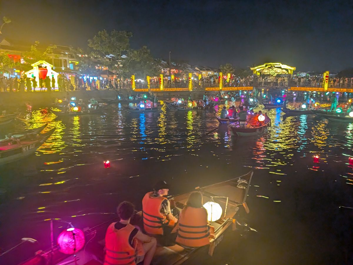 ホイアンランタン祭りが大変綺麗で良かったでが混雑の為、手漕ぎボートに乗り灯籠流しが出来ず残念でした。