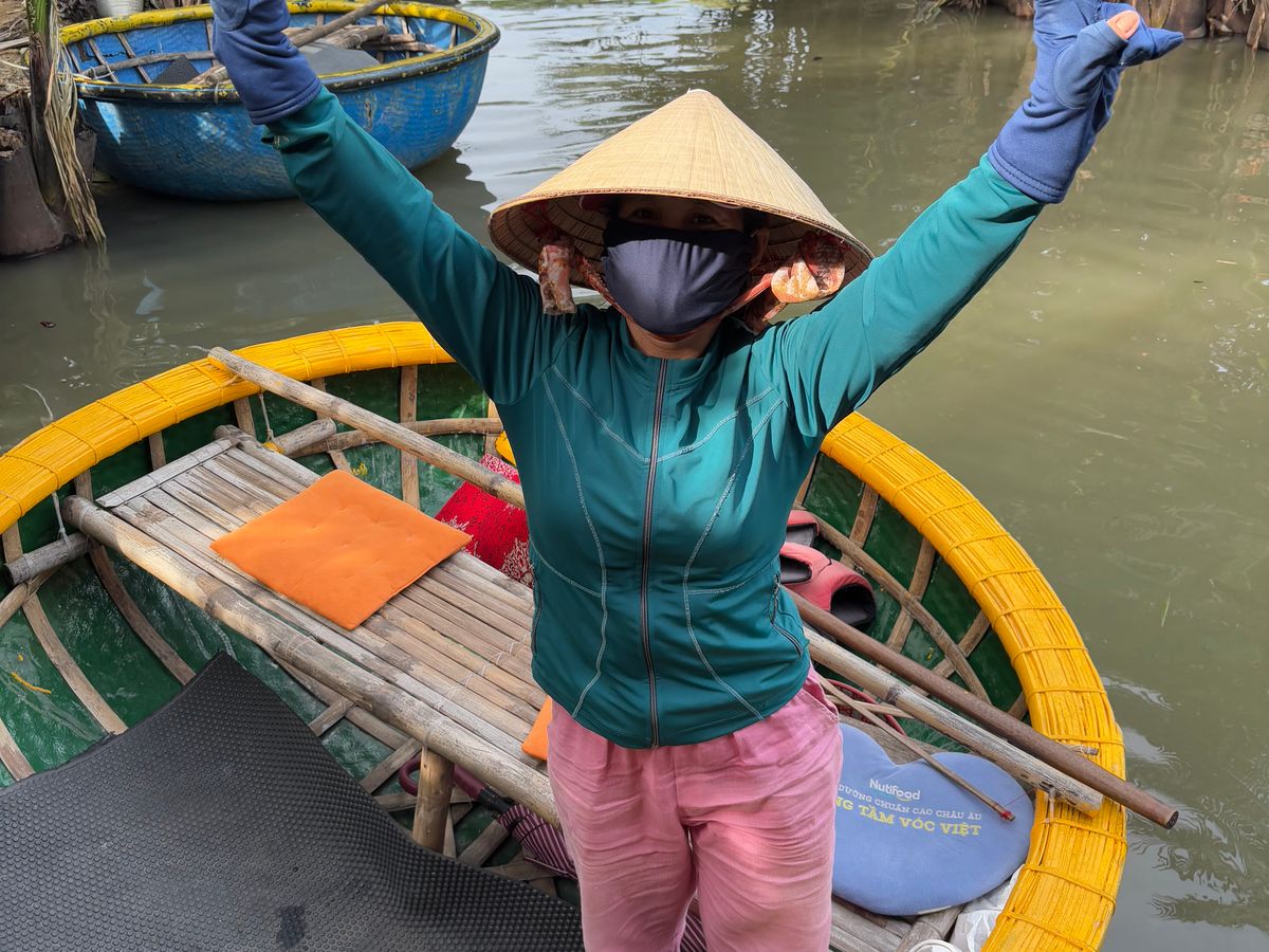 ココナッツバスケットボートでは、可愛いノンラー(帽子)をかぶり、ベトナムの雰囲気を満喫。漕ぎ手の方も写真やスピードボートを体験した際は動画を撮ってくれ、サービス満点。とても楽しかったです。