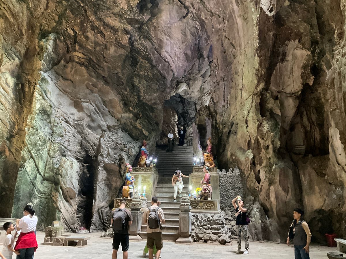 午前中はマーブルマウンテン(階段での軽い登山と下山)、チョコレート屋(コースに無いお店を追加してくれました)、ピンク大聖堂(中には入れず外からだけ)、彫刻博物館(午後のミーソン遺跡の彫刻など)、そしてランチ(名物が盛りだくさんで美味しかった)までダナン観光、そして午後は1時間の車移動(お腹いっぱいのあとの睡眠タイム)で世界文化遺産のミーソン遺跡(自然の中に一部修復された遺跡が点在)、そしてまた1時間の車移動でホイアンの旧市街観光とショッピング(夕飯の前後に買い物タイムや自由時間あり)とディナー、そして最後に灯籠流し体験でした。ホイアンからダナンまでは約40分のライドでホテルに到着。ツアーは3組計4人の参加でガイドのアンさんは終始笑顔でフレキシブルに対応してくれました。昼も夜も食事はとても美味しく、参加者4人だったので一緒にテーブルを囲み、色々な旅の情報も教えてもらいながら楽しくいただきました。