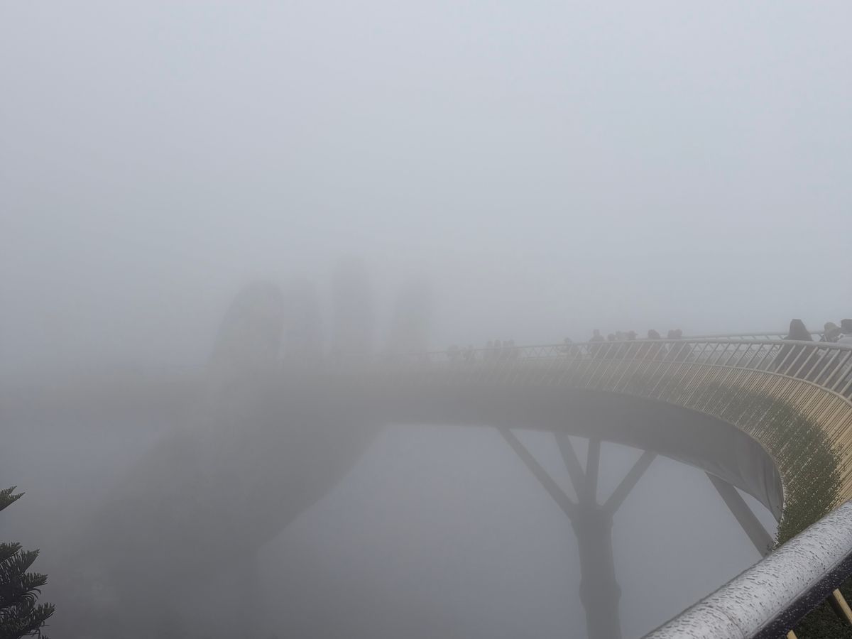 当日、ハノイからダナンへ移動したので、夕方入場プランを申し込んだのですが、テーマパーク内の全アトラクションは終了していました。なので、濃い霧の中を世界最長のロープウェイで上まで登り、ゴールデン・ブリッジで写真を撮ったり、フレンチ・ヴィラを散策しました。自己都合なので仕方ありません。