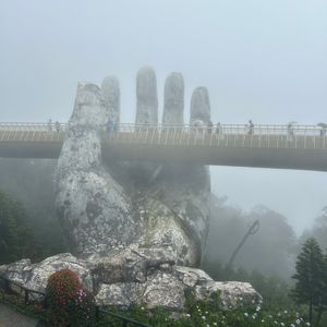 ロープウェイの道中は濃霧で心配しておりましたが、日本語堪能なフォンさんが「太陽見えているので、神の手、見れると思いますよ~」と教えてくださった30秒後くらいに、ゴールデンブリッジが本当に目の前に現れました。