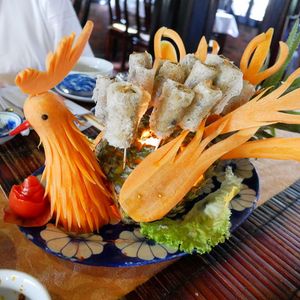 ガイドさんが案内してくれたフエ宮廷料理の店はトイレ付きの個室で冷房も効いていて、ゆっくり落ち着いて食事できて最高でした。