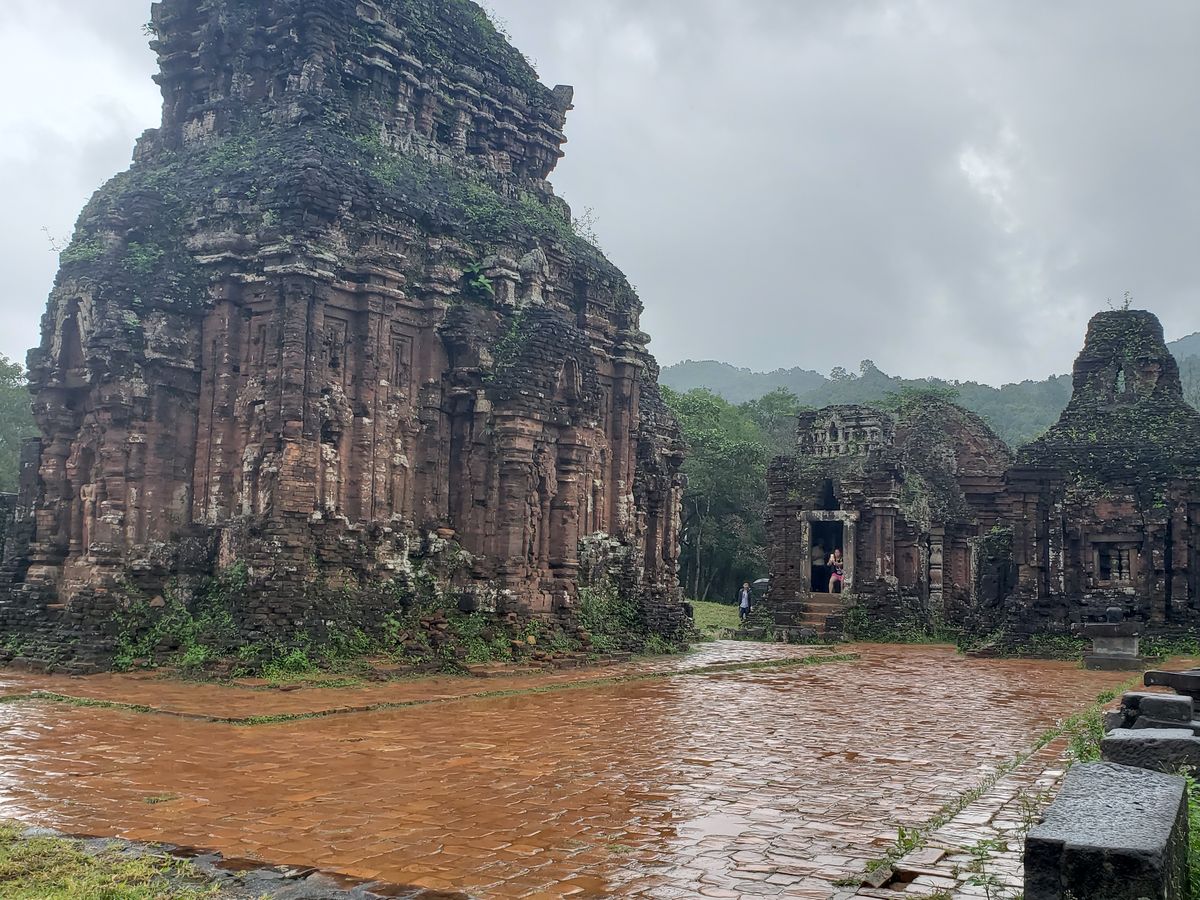 ダナンとホイアンに滞在中、どこかでミーソン遺跡を観に行くつもりで細かく決めずに現地に来ました。当初はいわゆるツアーに参加しようかと思いましたが、夫婦とも朝に弱いのもあり、ホテルをダナンからホイアンへ移る日に合わせ荷物の移動も兼ねてお願いすることにしました。ガイドのハンさんはとても感じが良く気配りをして下さり、車移動の間にベトナムの伝統的な結婚観や、働く女性の仕事と家庭の両立の大変さなどを話してくれました(こちらがいろいろ尋ねたので)。ホテルに泊まった観光旅行でしたが、この時間はベトナムの方の普段の生活に少し触れたように思いとても有意義でした。