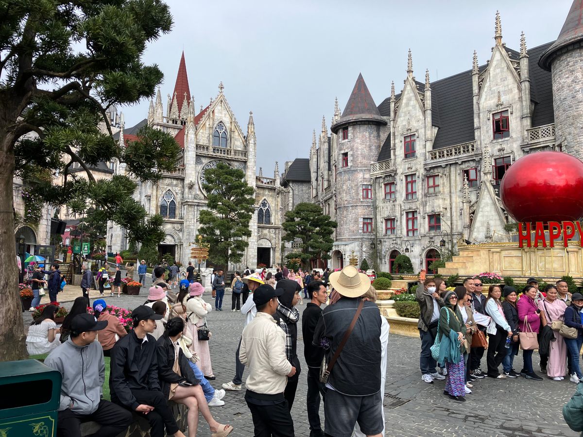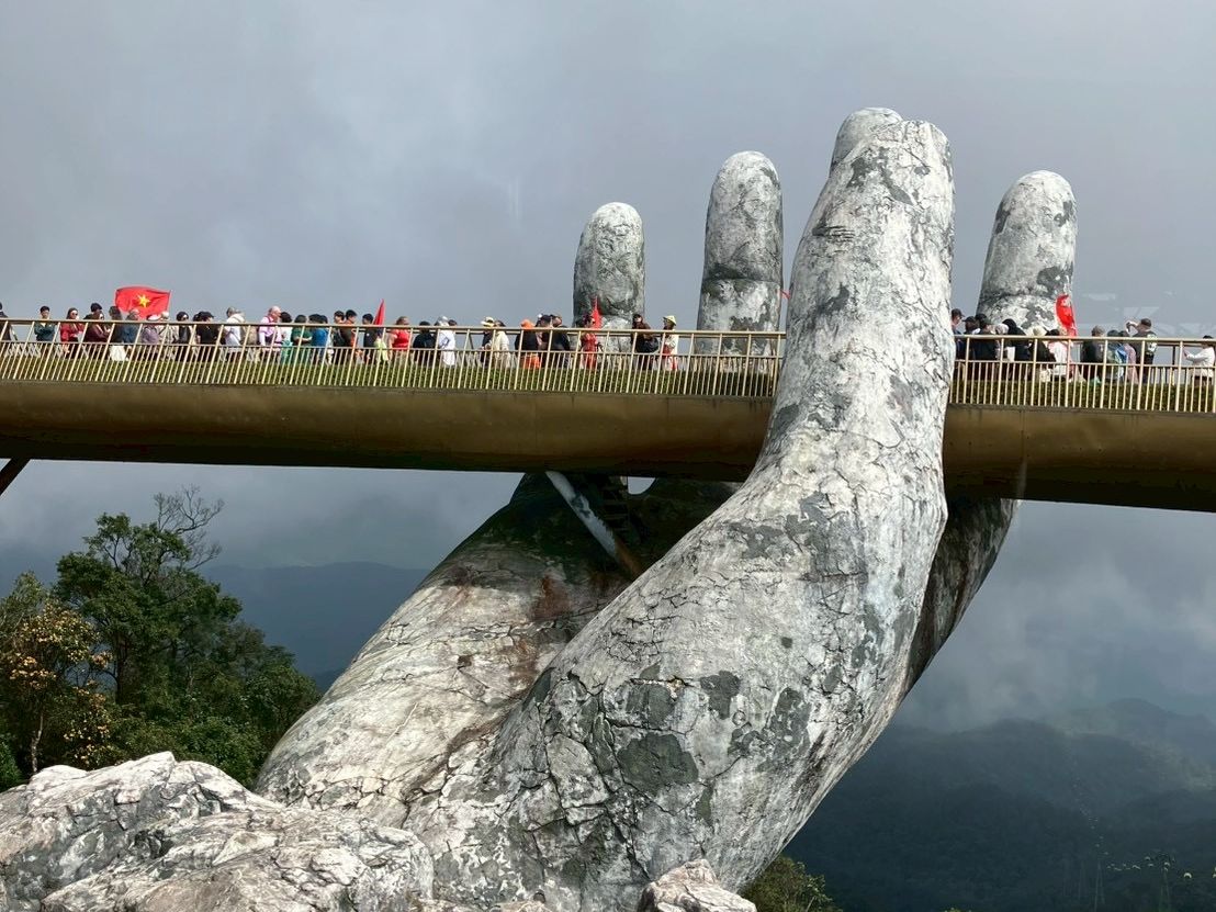 当日、ハノイからダナンへ移動したので、夕方入場プランを申し込んだのですが、テーマパーク内の全アトラクションは終了していました。なので、濃い霧の中を世界最長のロープウェイで上まで登り、ゴールデン・ブリッジで写真を撮ったり、フレンチ・ヴィラを散策しました。自己都合なので仕方ありません。