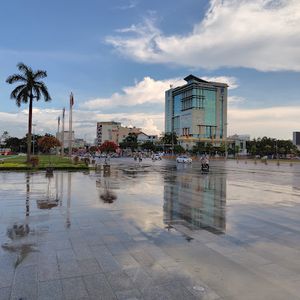 空港は到着便で少々混雑、おまけに突然の激しいスコールでタクシーを探すことも大変な状況でした。お迎えをお願いしていたので出口すぐのところにわかりやすいパネルで待機されており、傘も用意していただきました。