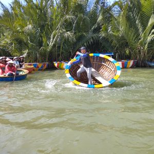 夫婦で初めてのダナン旅行。右も左もわからないのと、旅行中は世界遺産観光というイベントを取り入れたかったので終日ツアーに申し込みました。プライベートカーが 朝一滞在ホテルに迎えに来てくれてとっても快適でした。ガイドのゴックさんは日本語が上手でジョークまで交えながら案内してくれました。 まずはハン市場とダナン大聖堂を見学した後美味しいベトナム料理を頂き大満足でした。 五行山は階段がきつく足腰に自信のない方は無理は禁物と思います。洞窟内の雰囲気がとても良く来てよかったなと思いました。ココナッツ村のバスケットボートはとても斬新でココナッツのジャングルを進むとパフォーマンスをする集団がおり楽しませてくれます。夕暮れ時のホイアン川と街並みがとてもきれいでランタンの明かりが神秘的でした。
