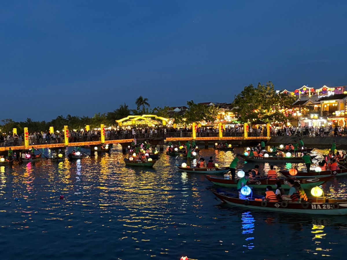 日没後の景色は美しく、写真映えします。ホイアン散策については、観光客が多すぎて、私たちは子どもと老人がいることもあり難しいので早めに切り上げました。
