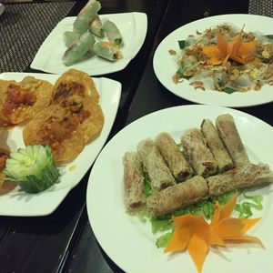 あいにくの小雨でしたがその分いつもより混雑がないそうでゆっくりとランタンのたくさん灯る古い街なみを楽しめました。街じゅうがランタンの灯りで幻想的な雰囲気。お食事も街中で一番とのサクラでホイアン3大名物を頂きそれなりに美味しく最後の揚げバナナのデザートは食べきれないほどお腹いっぱいになりました。ツアー会社のアンさんもとてもソフトで優しい方でこちらの要望を色々聞いてくれてとても良かったです。