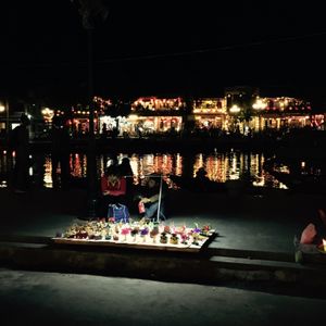 川の縁を歩き、灯篭を流し、いろんな形のランタンの前で写真を撮り、そしてナイトマーケット。