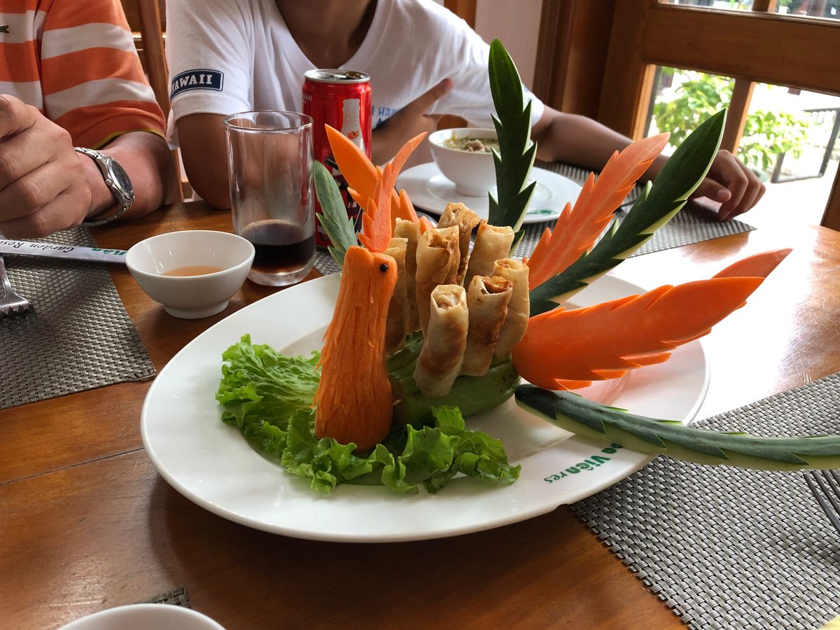 車に乗って約4時間、フォンニャ・ケバン国立公園近くのベトナム料理レストランに着き、ここで昼食をとった。味はまあまあで、ベトナム料理独特の香草の匂いは強くなく、美味しく食べることができた。ただ、二人分の量にしてはかなり多かった。