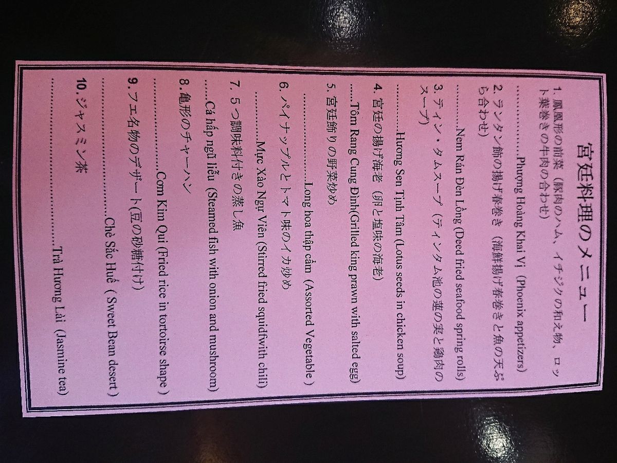 タクシーでフエまで行くか、ツアーで行くか迷ったのですが宮廷料理が食べてみたかったのでこちらに決めました。