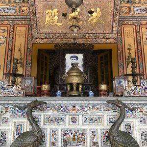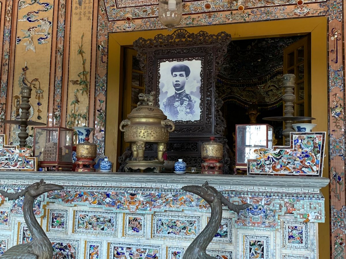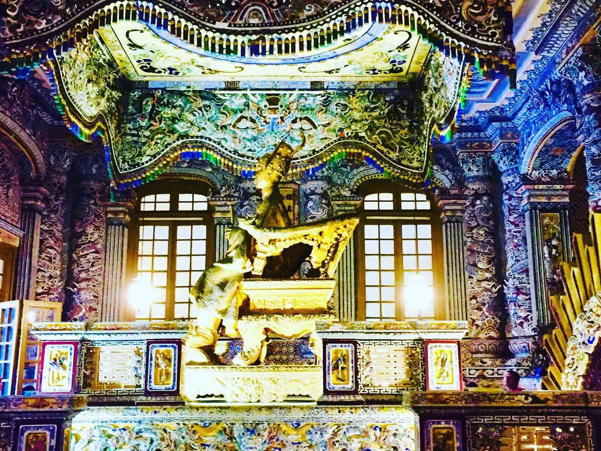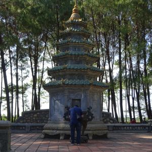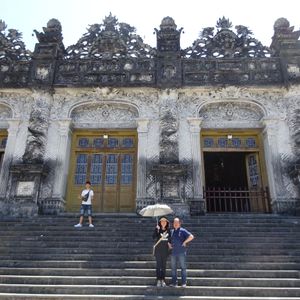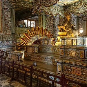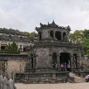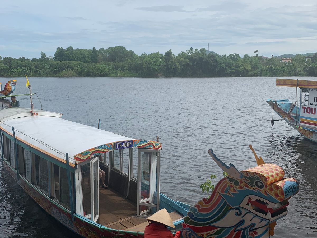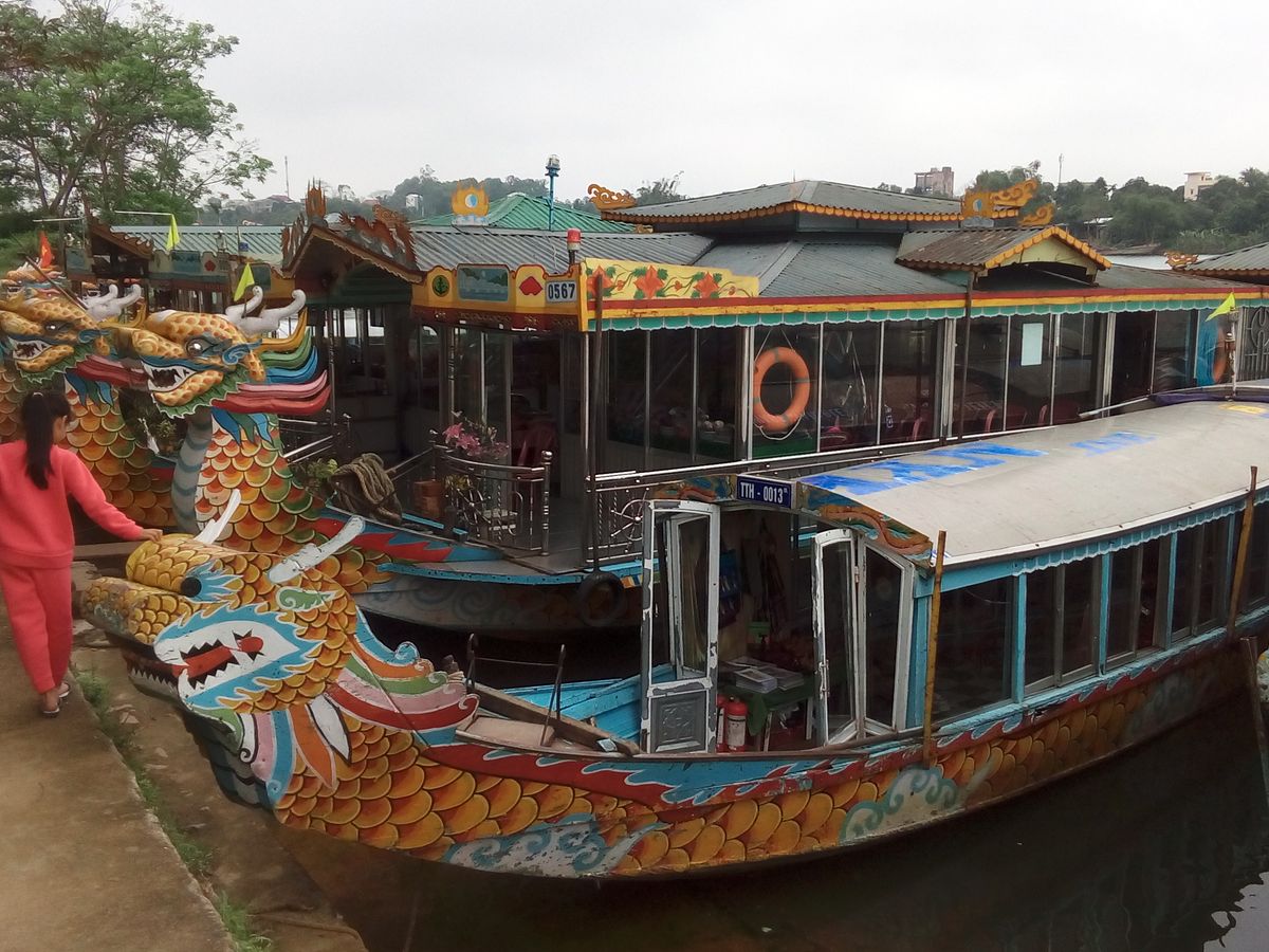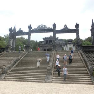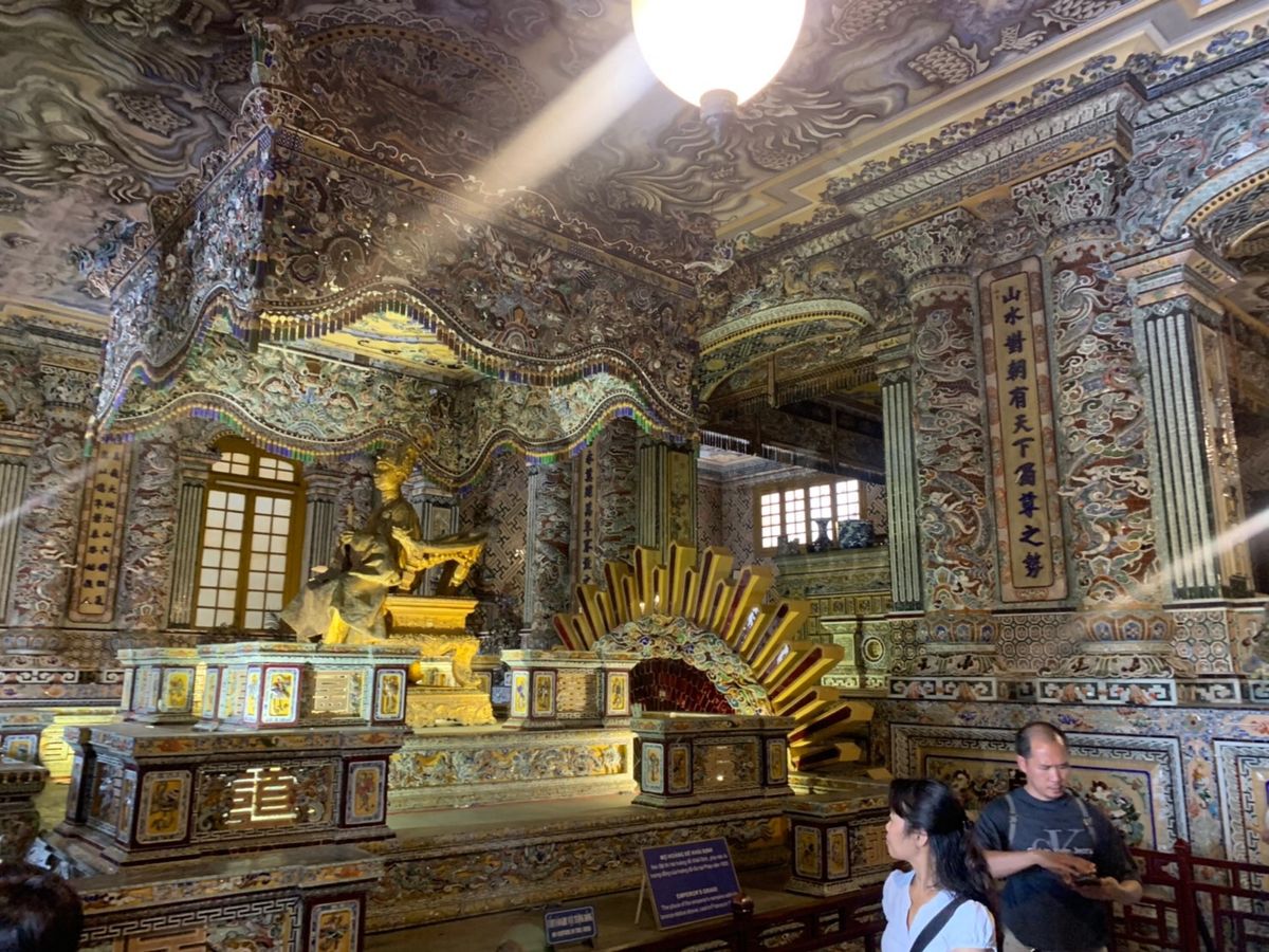 一人参加で、ツアー参加者は自分だけ。ツアー会社側はガイドとドライバーさんの二名で少々申し訳無い気持ち。初めは天母寺へ。初めに解説してくれ、後半は自由行動。寺の前のボート乗り場からドラゴンボート乗船、約20分のゆっくりクルーズ。乗船客は自分一人。その後、グエン朝王宮で約1時間の自由行動。昼食後にカイディン帝廟に。ここも開設の後は自由行動。ガイドさん付きでも、基礎知識を教えてくれた後は一人で自由に行動できたので、よいバランスでした。ちょっと残念だったのは、往路で右手にきれいな砂浜が続くところで写真を撮りたいので少しだけ停めてください、とお願いしたのですが、時間が無いので、と融通がきかなかった事と、ボートの中で何度も何度もお土産を進められ、景色に集中できなかった事。往路の件は、ホテルに戻ったのが予定よりかなり早かったので、順当な行程だった事と海の景色がきれいと聞いていた場所で楽しみにしていた事を考えると、1~2分停まってくれても、とちょっと思ってしまいます。ただ、事故リスクを考えると予定外の行動を許さなかったガイドの方の判断は理解できますし、ボートの件もこれで生計を立てている事を思うと、仕方ないと納得はしています。観光客向けの笑顔だけでなく、ベトナムの方の普段の様子がうかがえる、よい体験でした。ポイントを絞ったコンパクトなツアーで、ダナンからの足を考えると、お勧めできるツアーです。