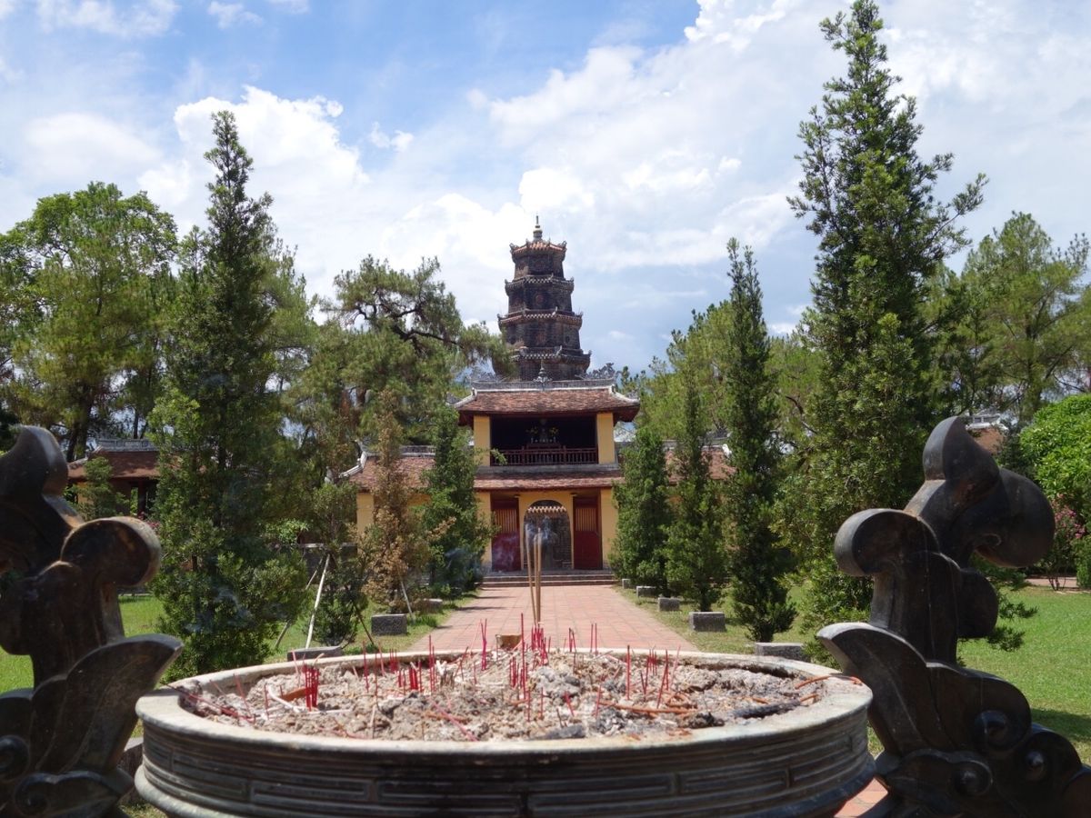 午前中に、カイディン帝廟、お土産屋さん、トゥドゥック帝廟。ご飯休憩後には、グエン王宮、ティエンムー寺院、ドラゴンボート。盛りだくさんのツアーで大満足でした。